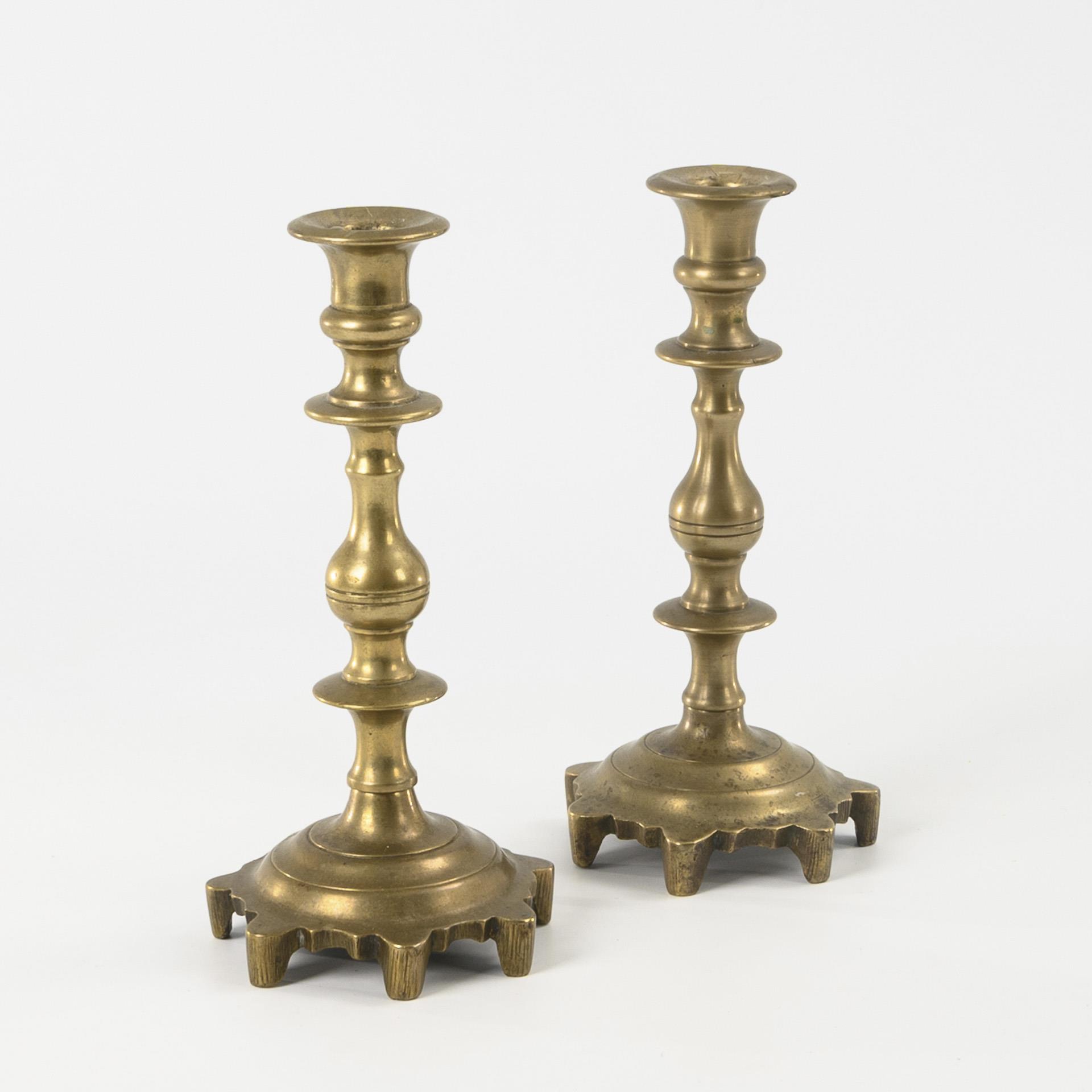 Bronzeleuchter mit 7 Beinen am geschweiftem Rundfuß sowie Balusterschaft mit Vasentülle.