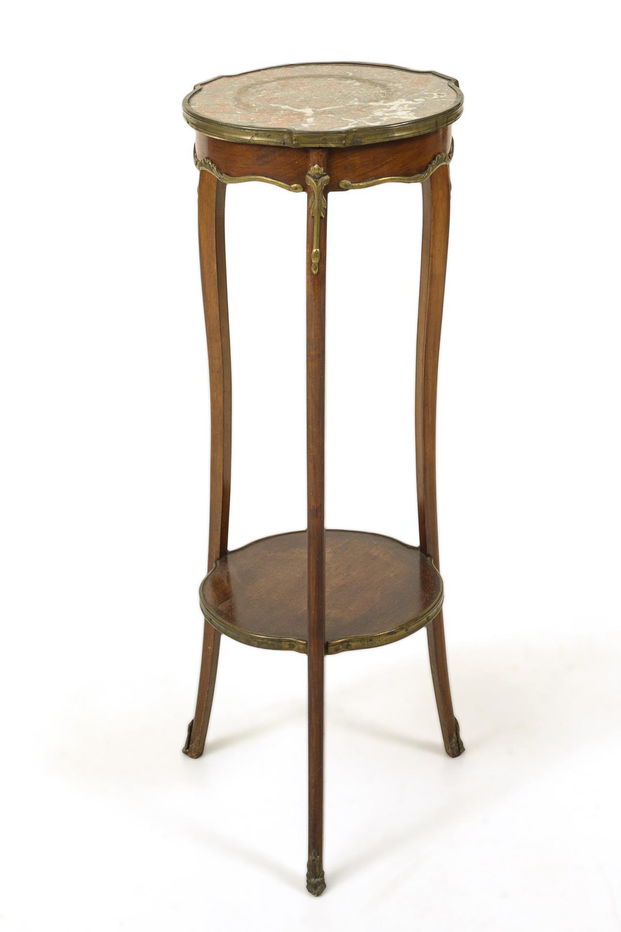Zierlicher Blumentisch mit Marmordeckplatte.