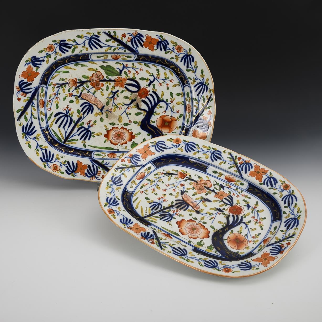 2 große ovale Platten mit asiatischem Dekor. Coalport, Shropshire.