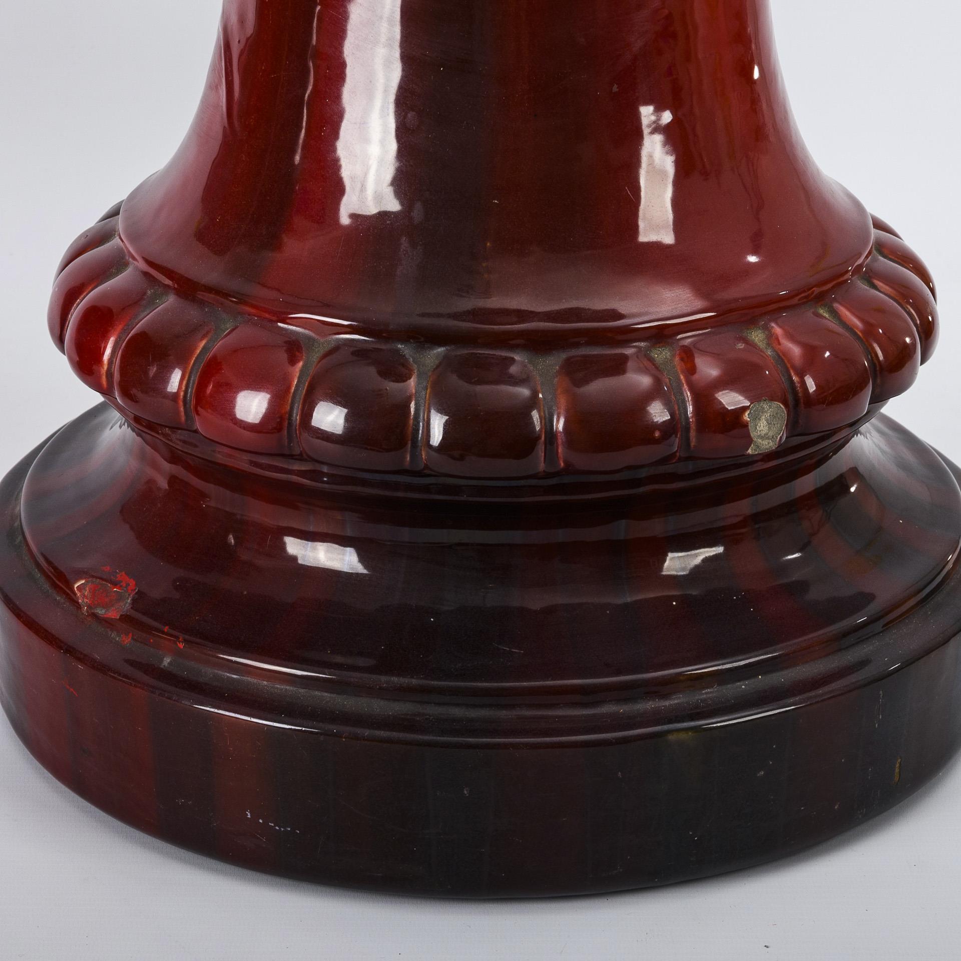 Steinzeug, ochsenblutrote Glasur. Topf H 42 cm, Säule H 92,5 cm. Topf 11,2 kg, Säule 17 kg.