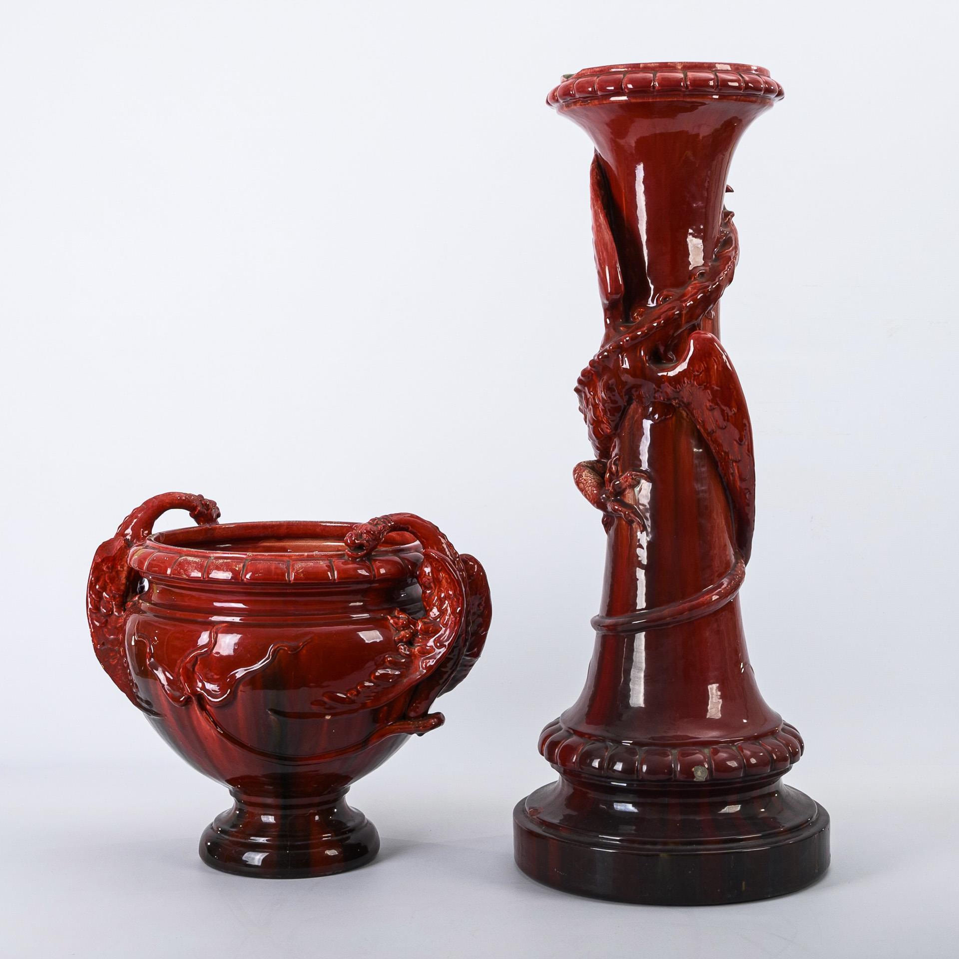 Jugendstil-Blumensäule mit Drachendekor. Jérôme Massier Fils, Vallauris.