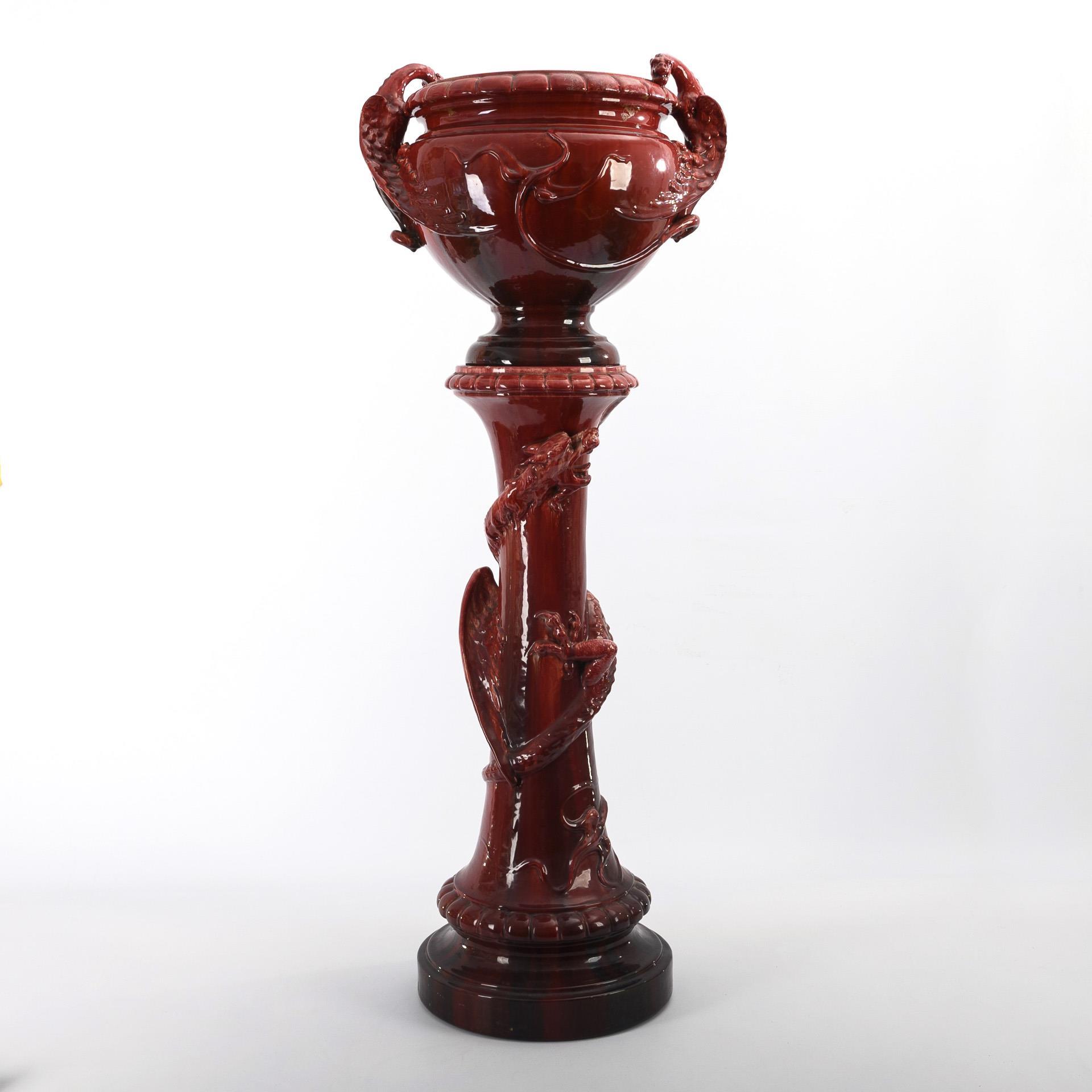 Jugendstil-Blumensäule mit Drachendekor. Jérôme Massier Fils, Vallauris.