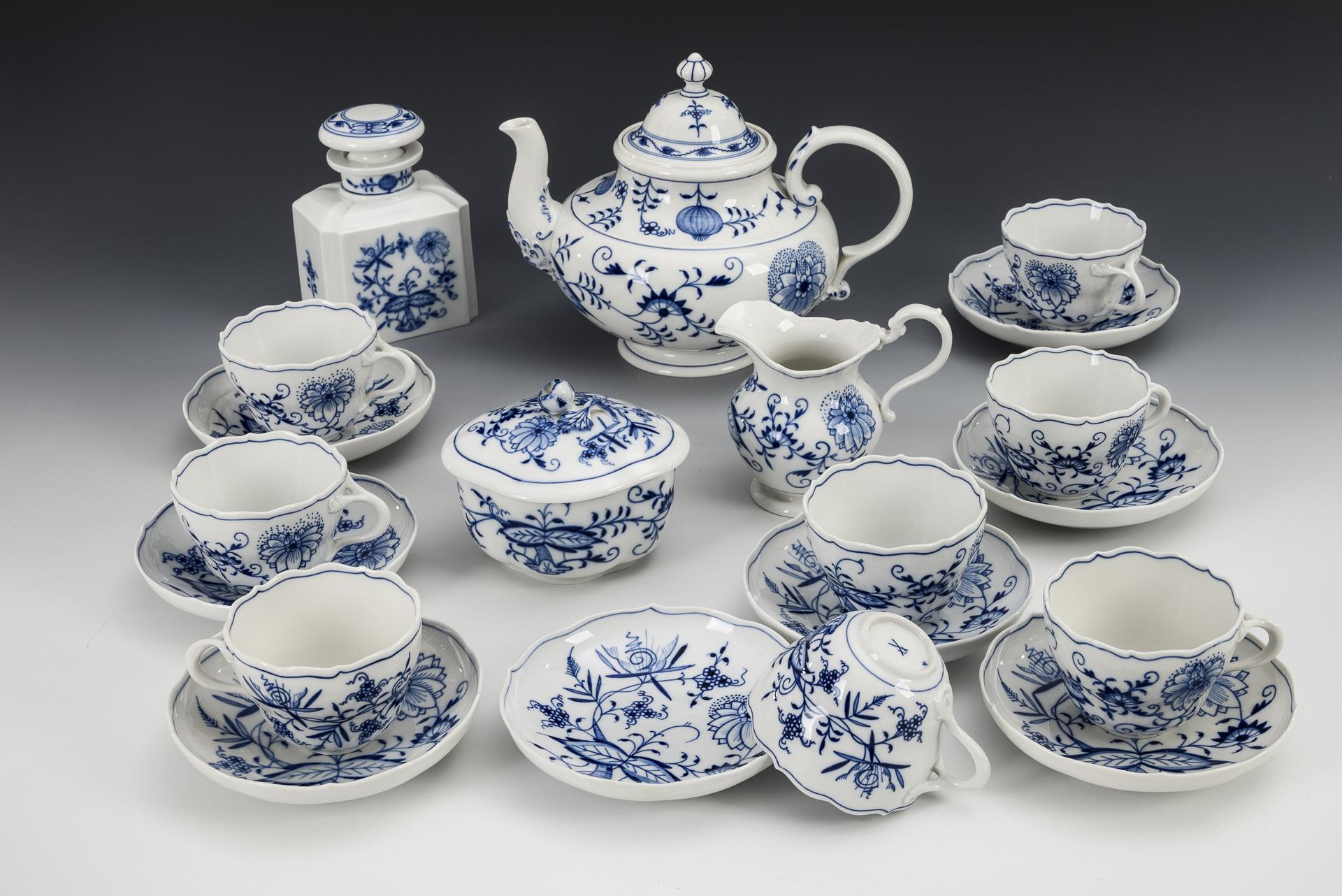 20 Teile eines Zwiebelmuster-Teeservice. Meissen.