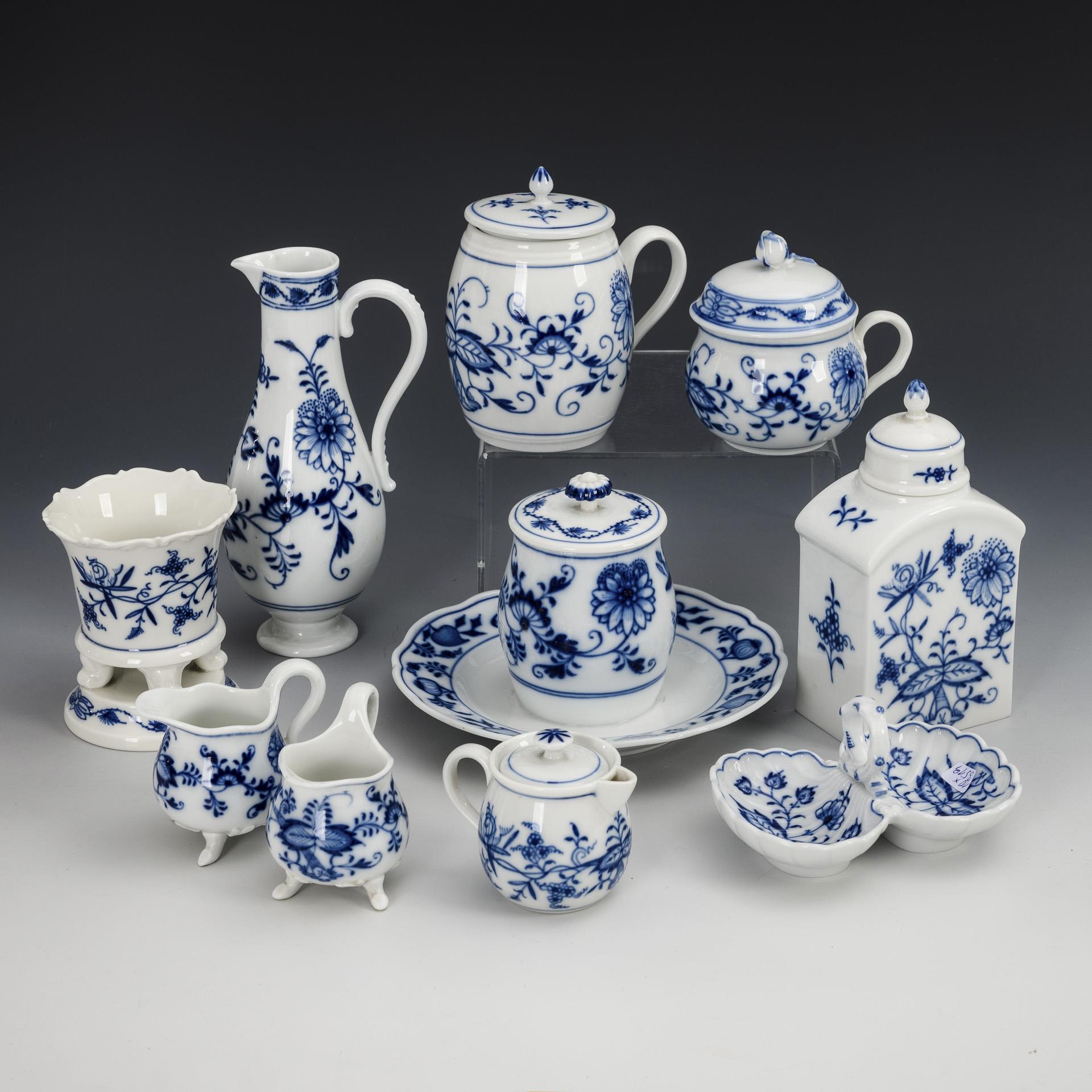 10 Teile Zwiebelmuster-Porzellan. Meissen.