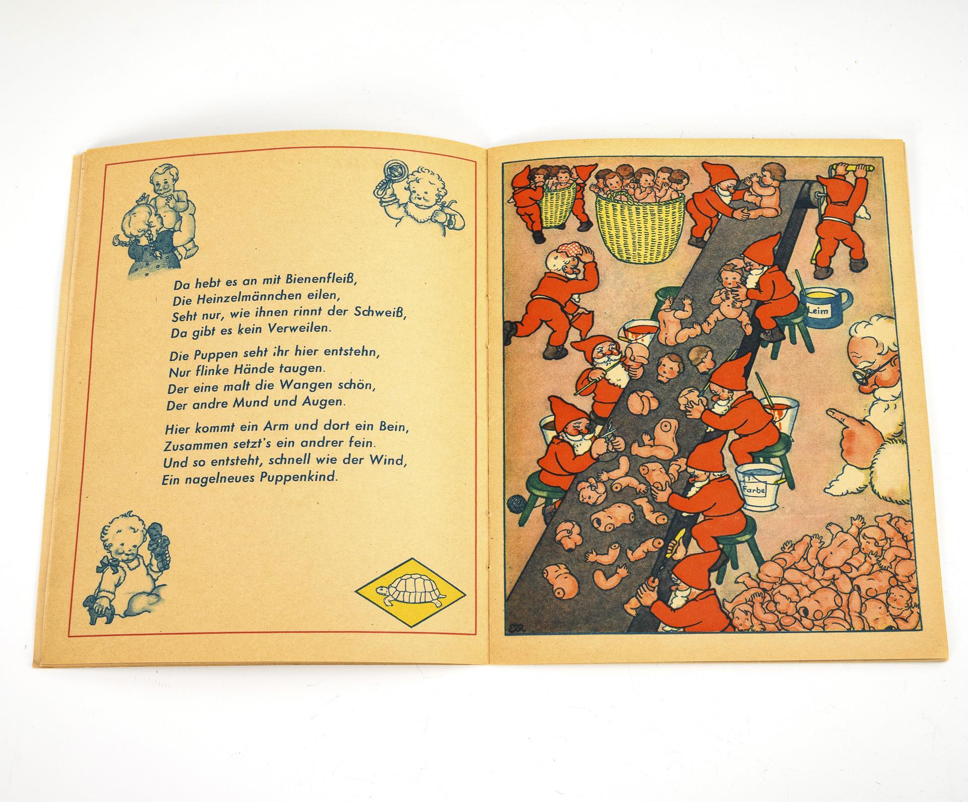 Candybox mit Celluloidpuppe + "Schildkröt"-Buch. Schildkröt.
