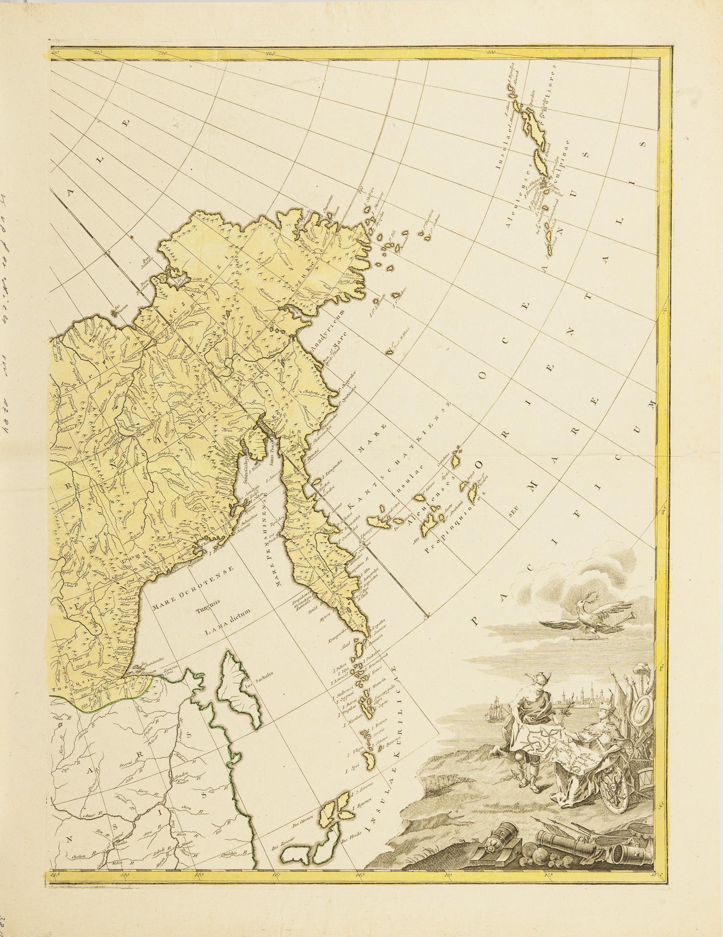 Unbezeichnete Teilkarte mit Kurilen, Kamtschatka und Aleuten, (Blatt 72 x 54 cm). / Unbezeichnete Teilkarte mit Schwarzem- und Kaspischem Meer, Aralsee. (Blatt 72 x 56 cm). / Zatta et Filios: "Britannicae Insulae ...", (Blatt 37 x 48 cm).