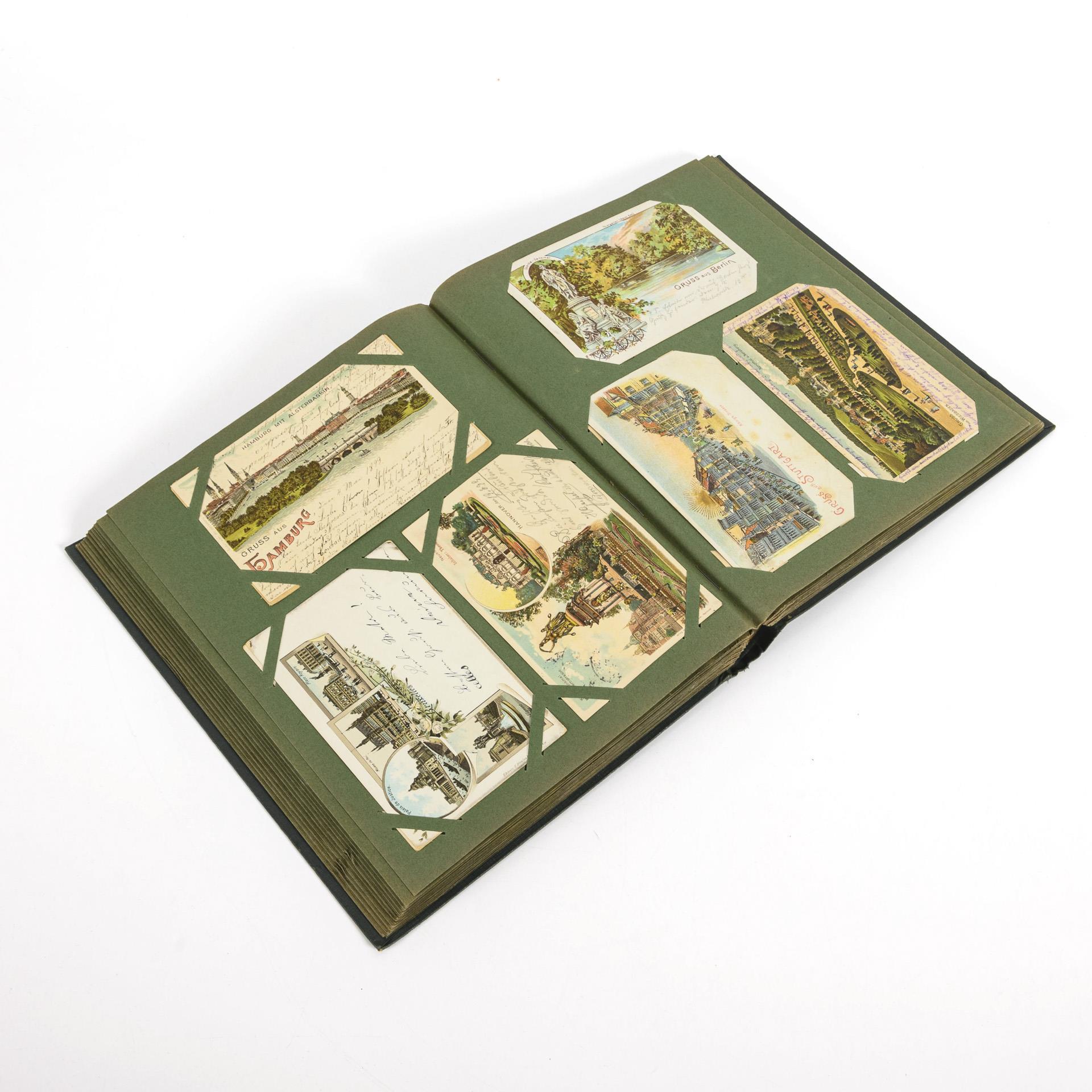 Postkartenalbum mit ca. 204 Lithografie-Ansichtskarten