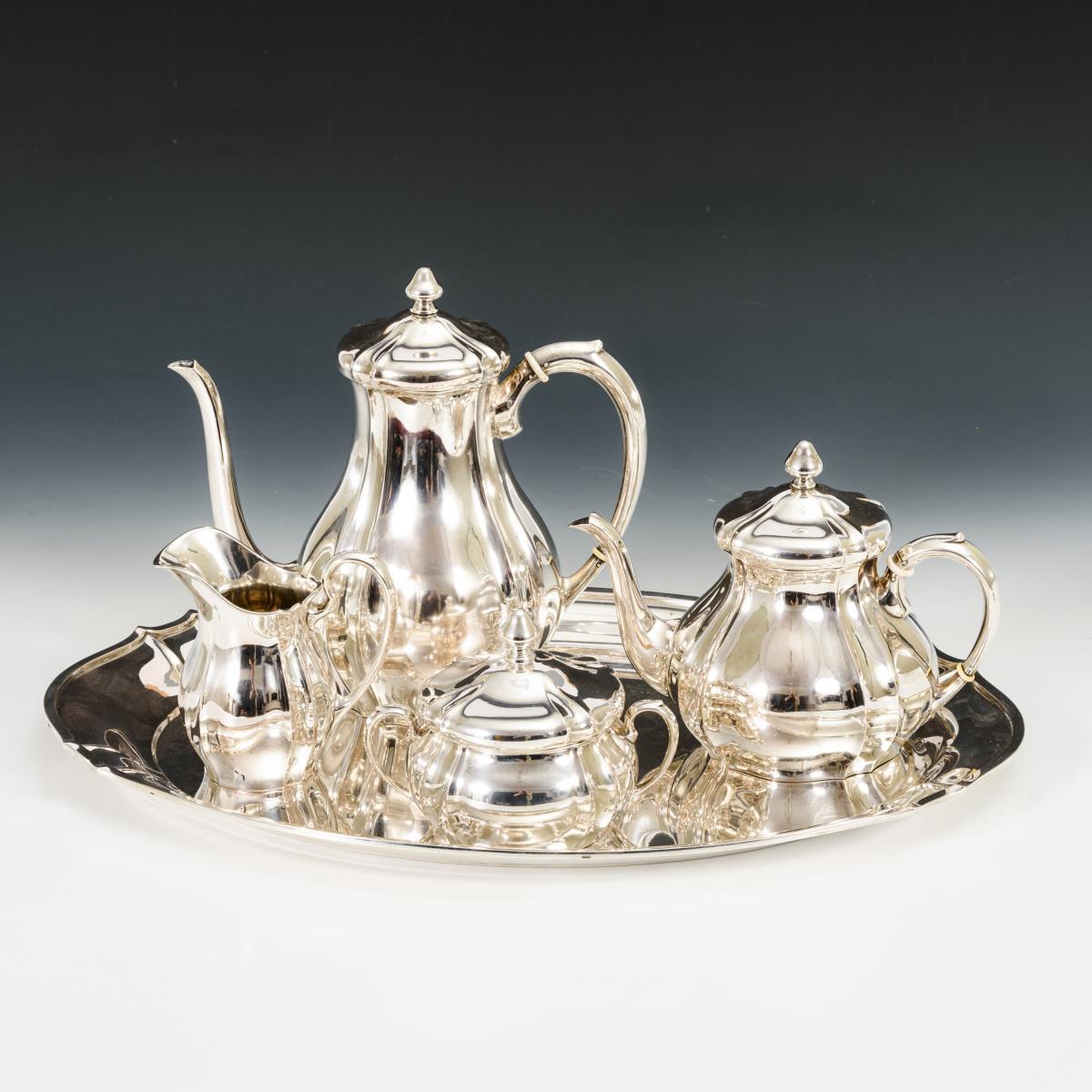 2 Kannen, Zuckerdose, Sahnegießer und Tablett. Gebrauchsspuren.