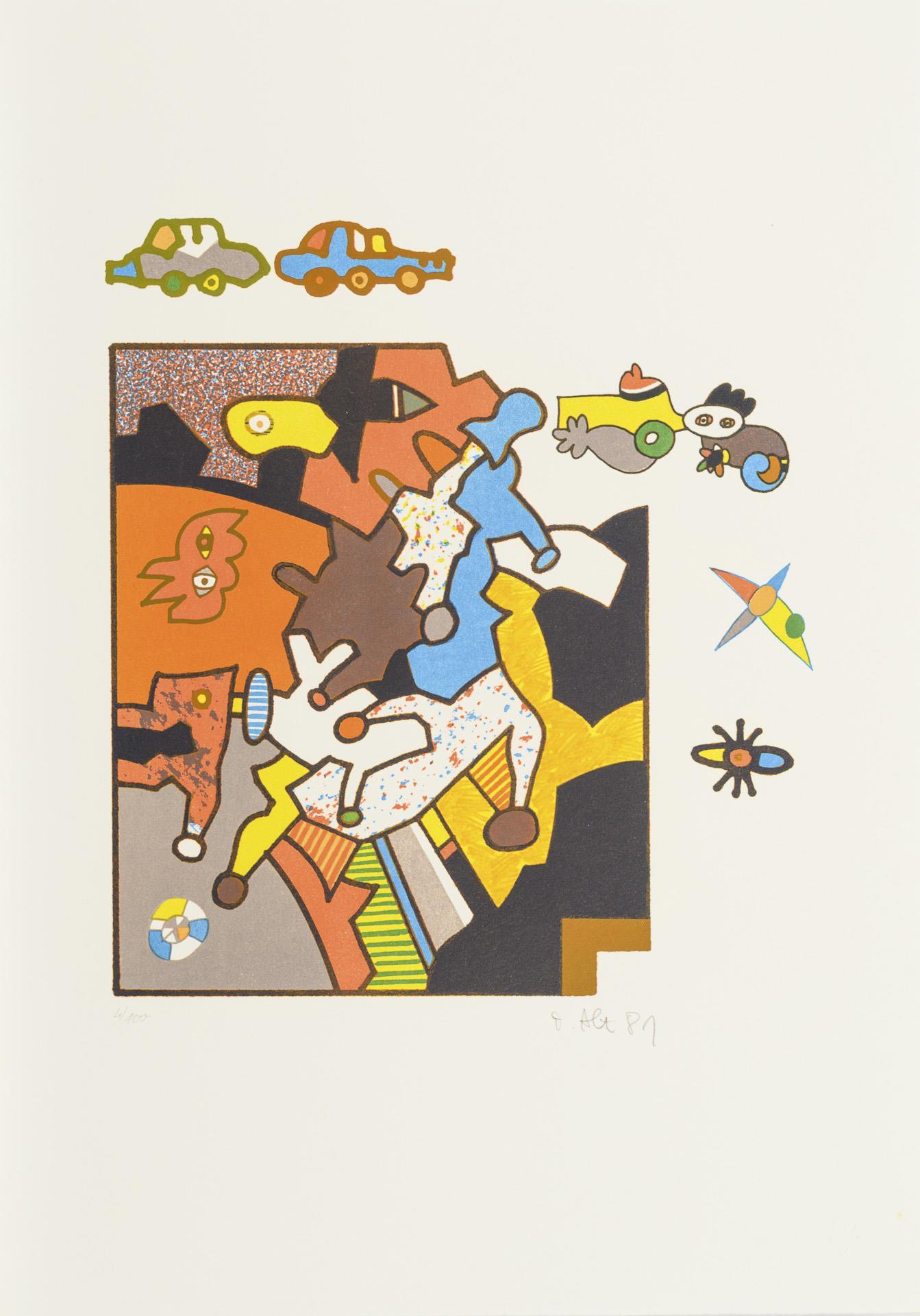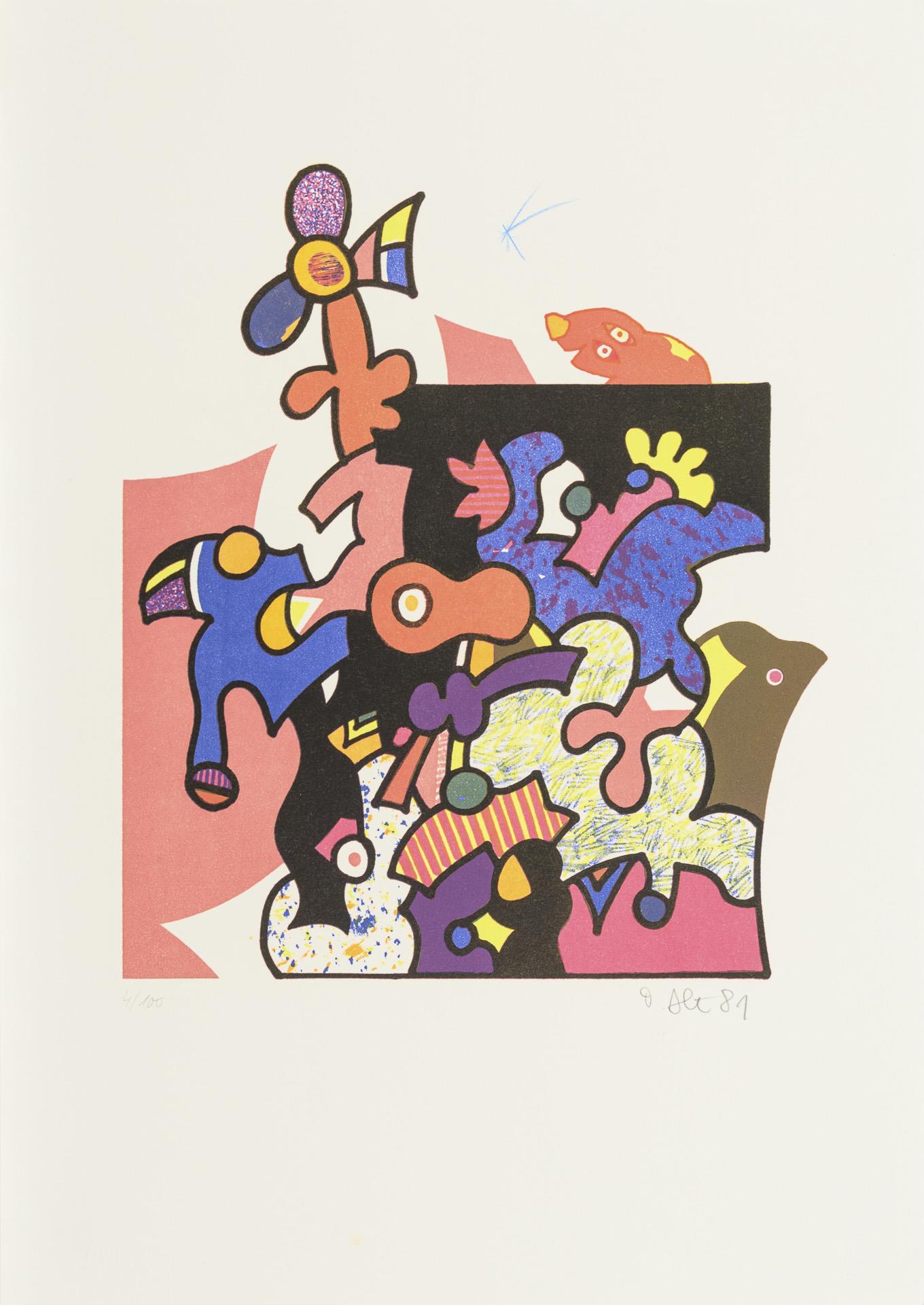 'Pärchen" 1 und 2. Beide Blätter nummeriert 4/100, je zwei Trockenstempel Biene und 'Original Litographie'.