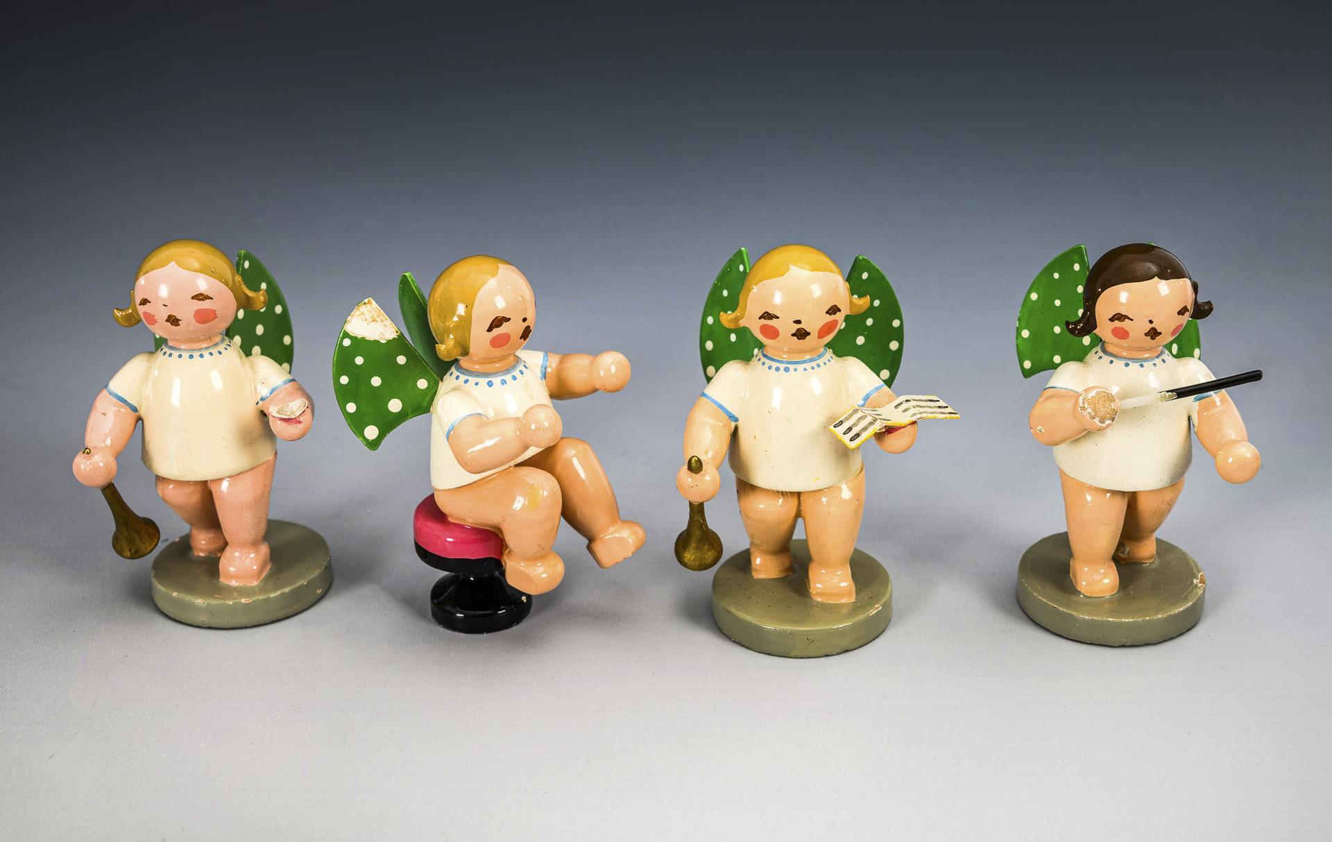 20 musizierende Engel und 1 Dirigent auf Podest. Teils mit kleinen Defekten oder Fehlstellen.