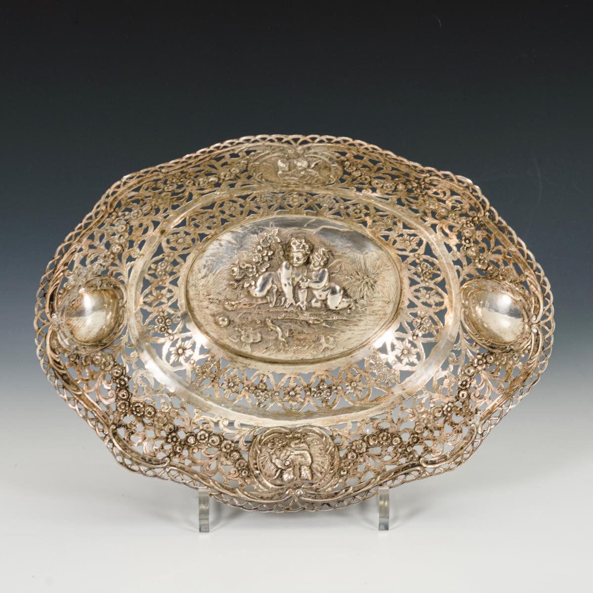 Silber. 6,5 x 29,5 x 22,5 cm. 370 g.