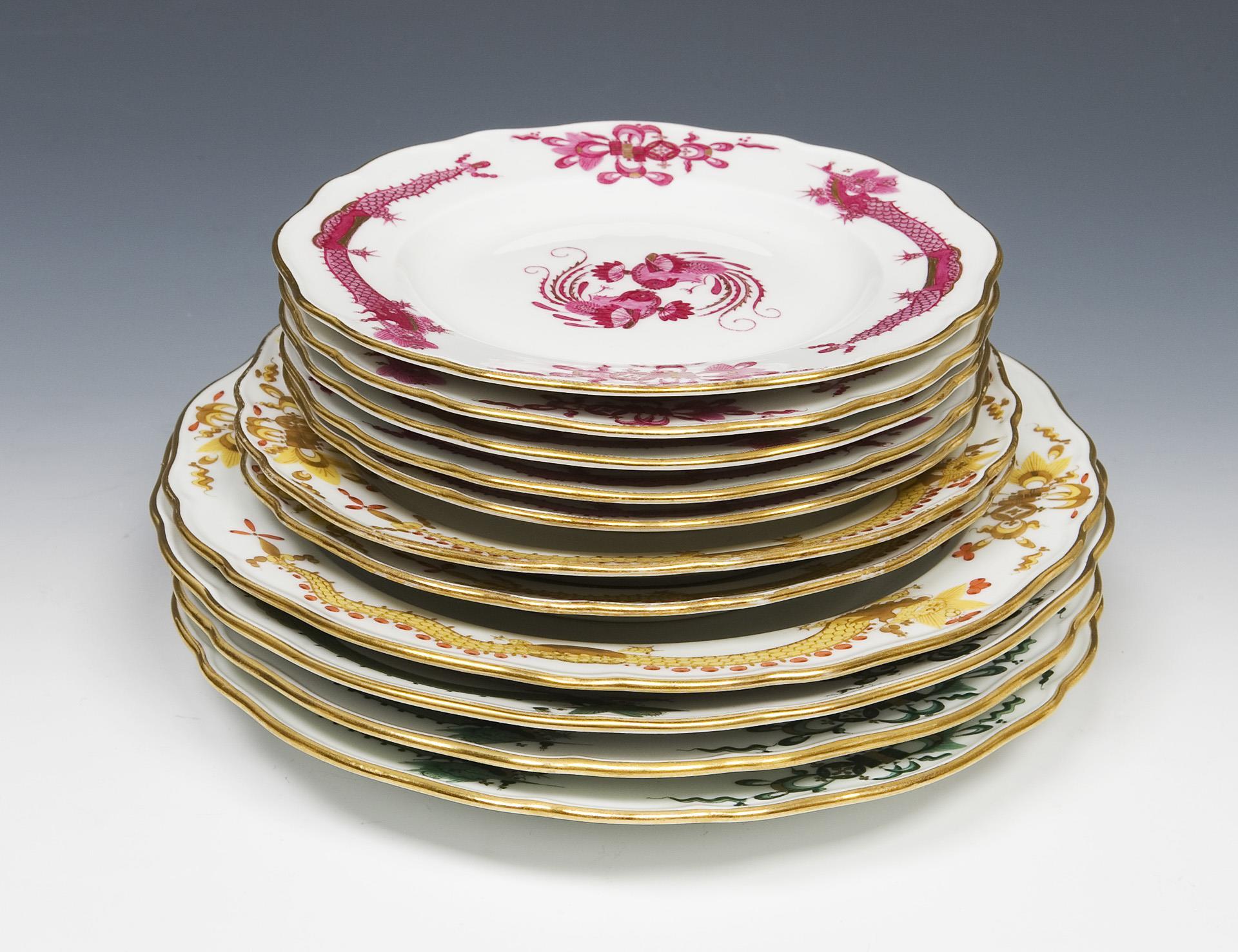 11 Dessertteller mit Drachendekor. Meissen.
