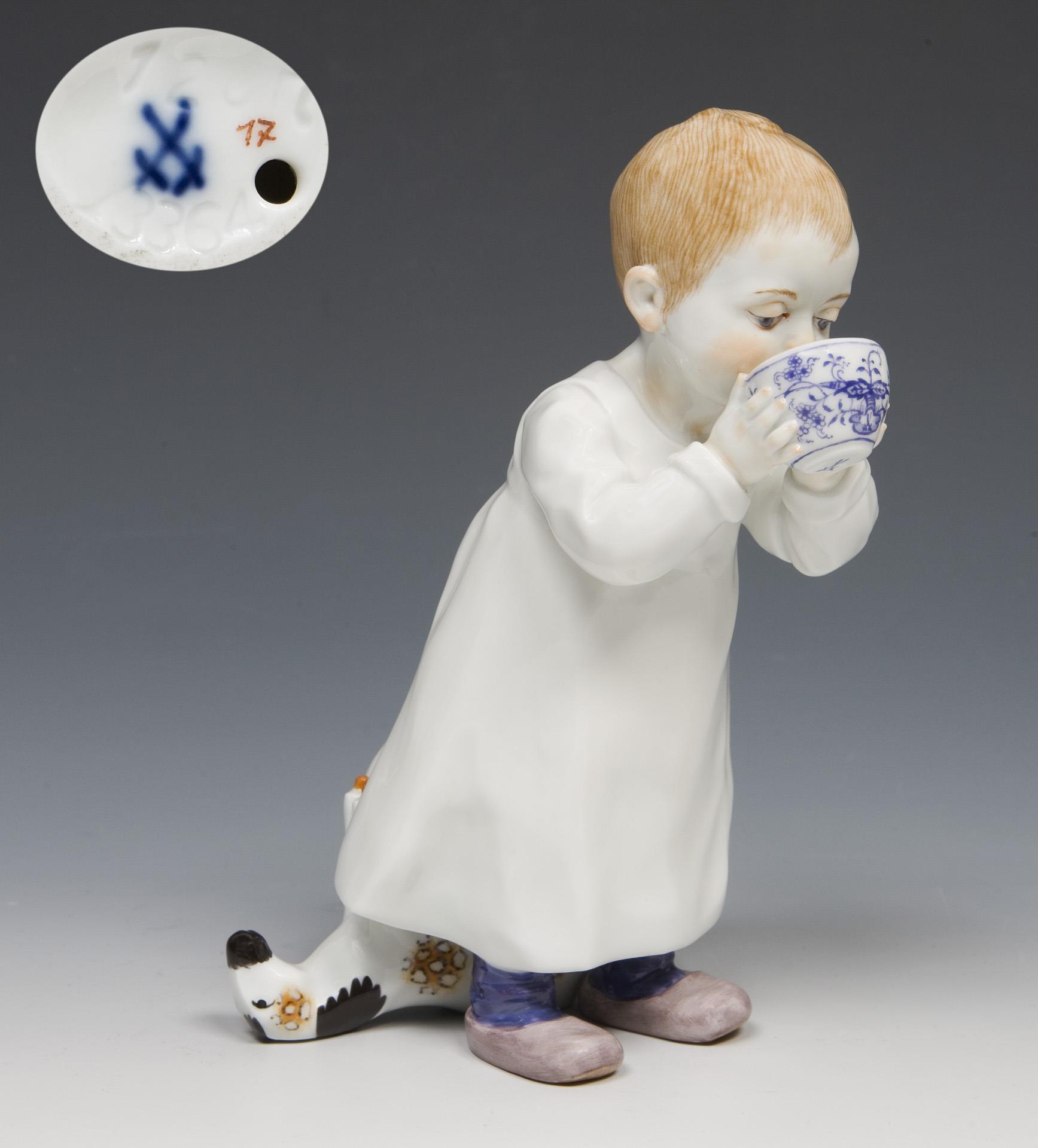 Jugendstil-Figur: Kind mit Tasse. Meissen.