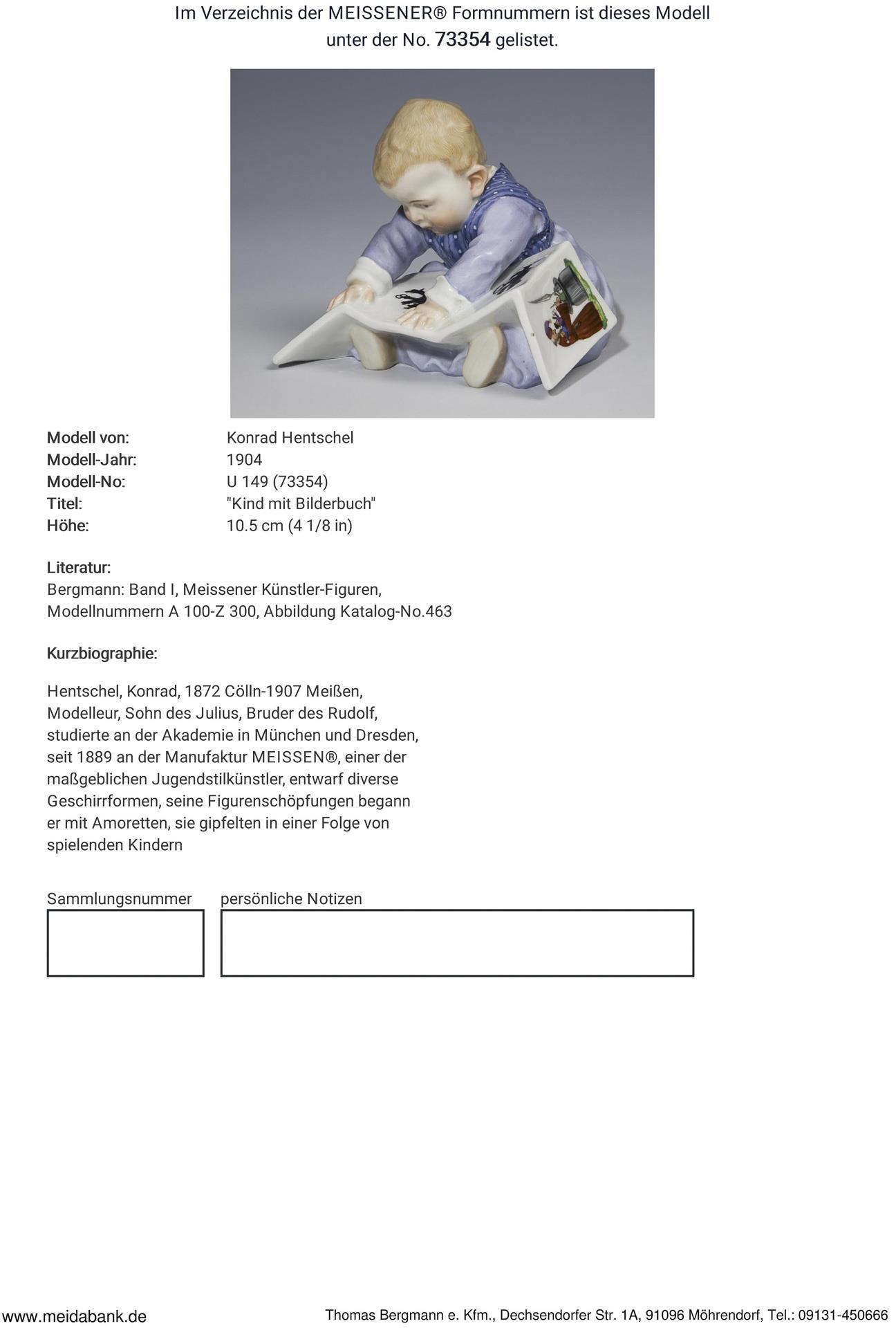 Hentschel, einer der bedeutendsten Modelleure des Meissner Jugendstils, studierte an der Akademie in München, seit 1889 an der Manufaktur, entwarf diverse Geschirrformen und Figuren. * Partnerauktion Bergmann.