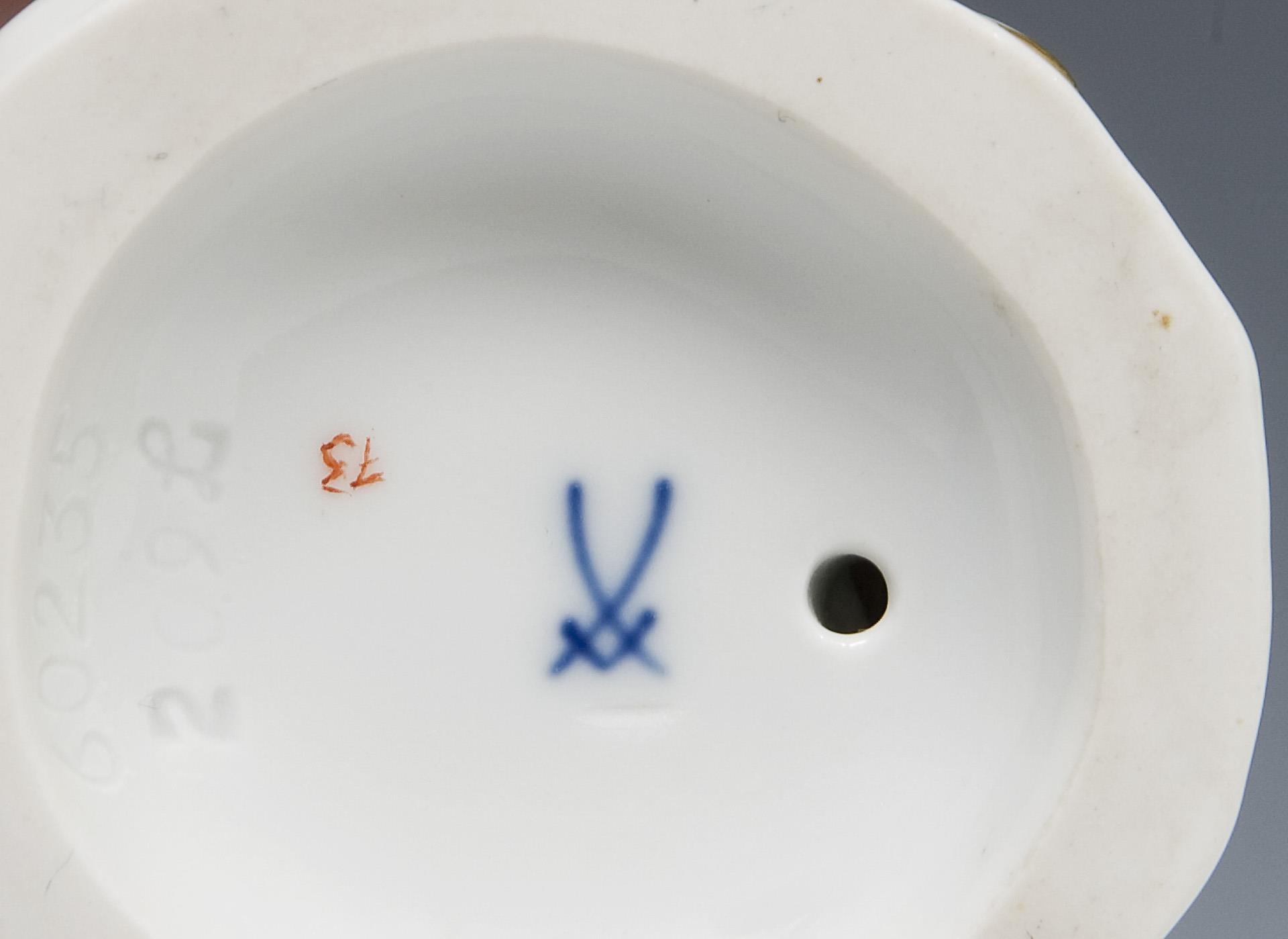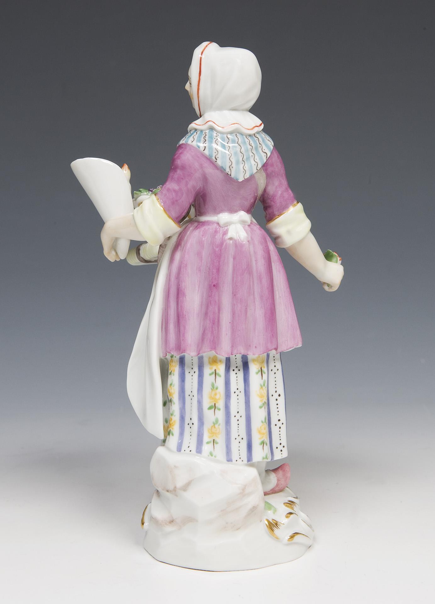 Modell-Jahr: 1753-1754, aus einer Serie von 34 Figuren, farbig bemalt, gold staffiert. Pressmarken, Malermarke, Schwertermarke einmal gestrichen.