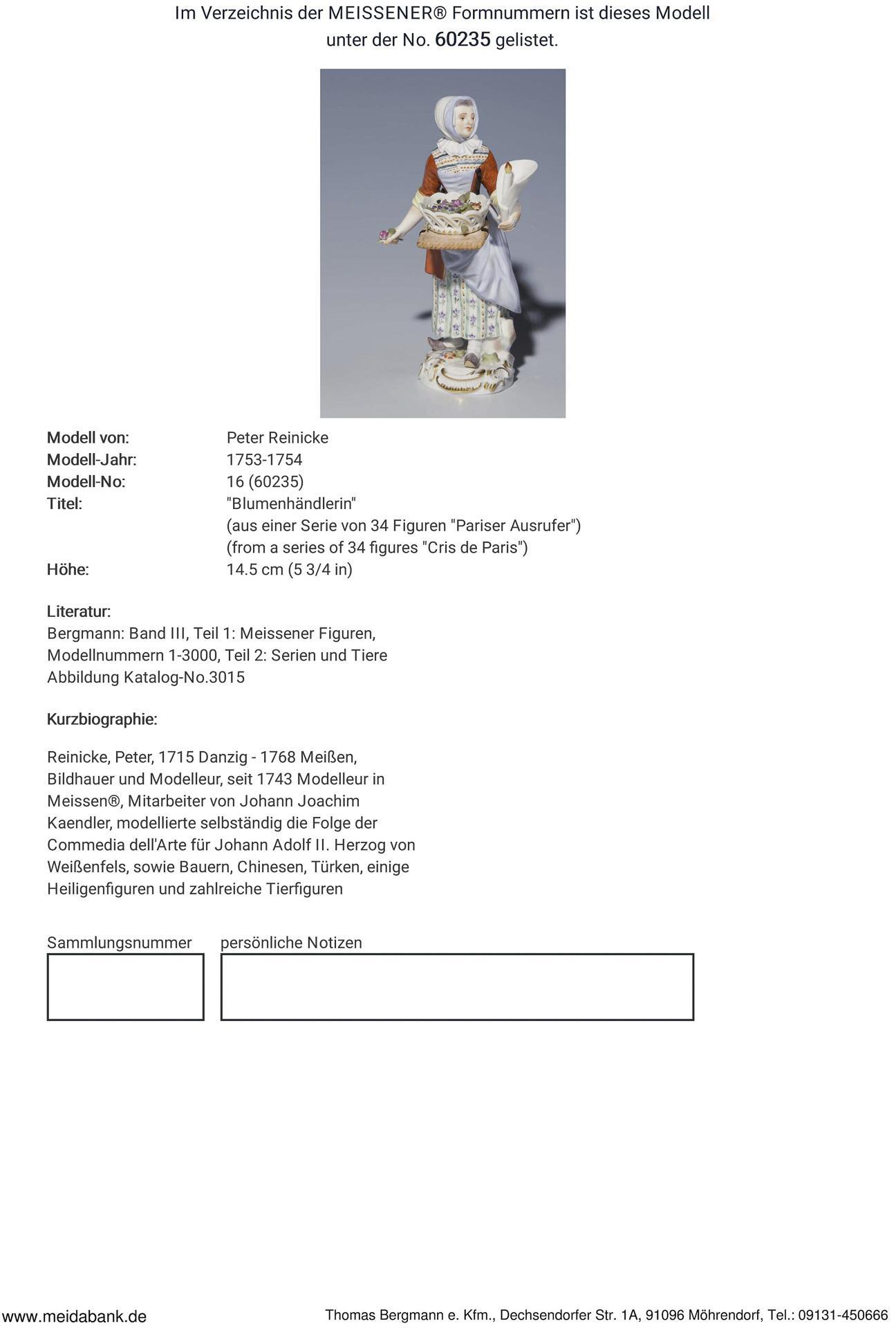 Reinicke, Bildhauer, seit 1743 Modelleur in Meissen, schuf zahlreiche Figuren, Mitarbeiter von Johann Joachim Kaendler. Meissen-Manufaktur-Preis: 2990,- Euro * Partnerauktion Bergmann.