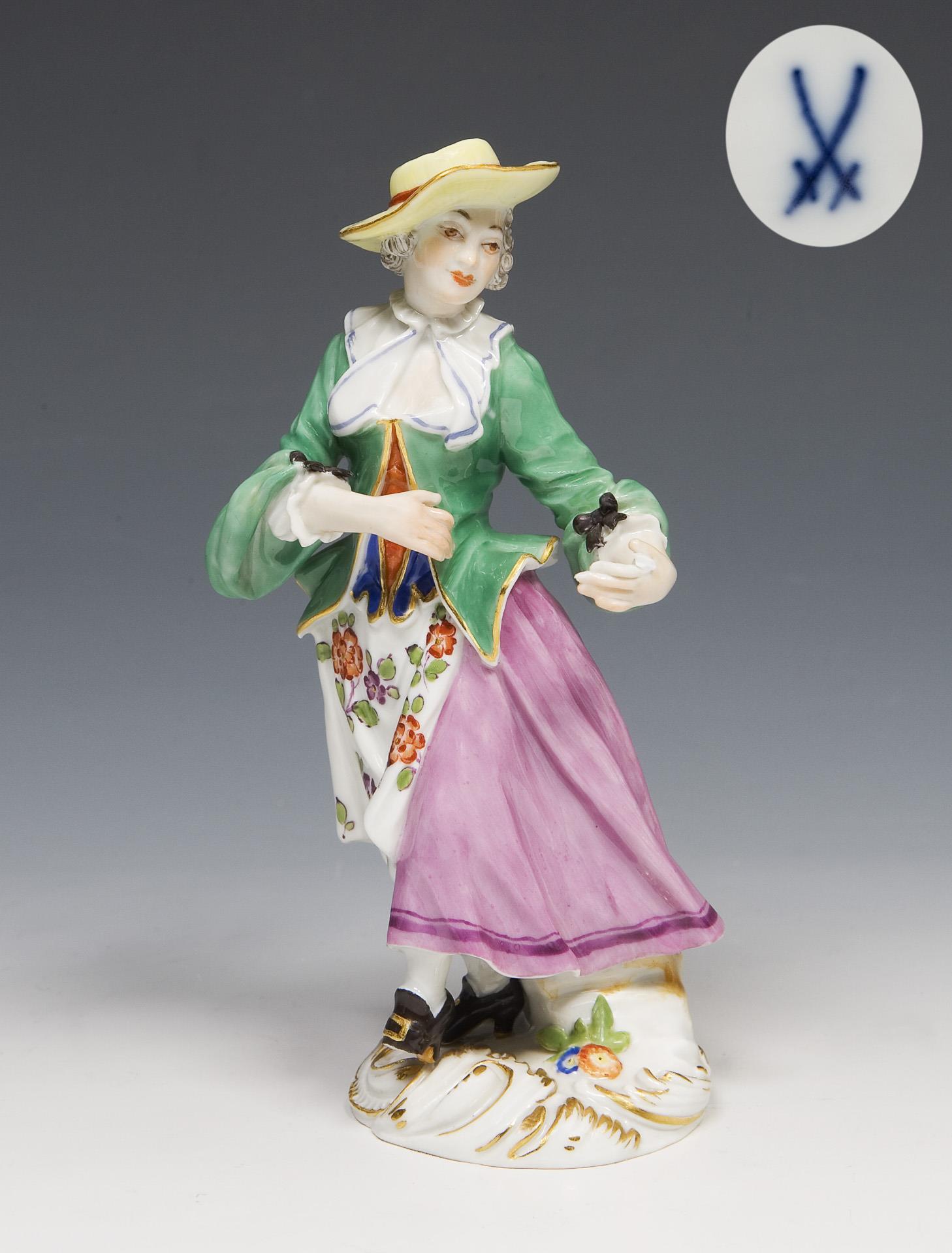 Modell von Johann Joachim Kaendler und Friedrich Elias Meyer 1755-1760. Aus einer Serie von 16 Figuren, farbig bemalt, gold staffiert. Ritzmarke, Pressmarke, Malermarke, Schwertermarke. Notenblatt fehlt, eine Schuhspitze bestoßen.
