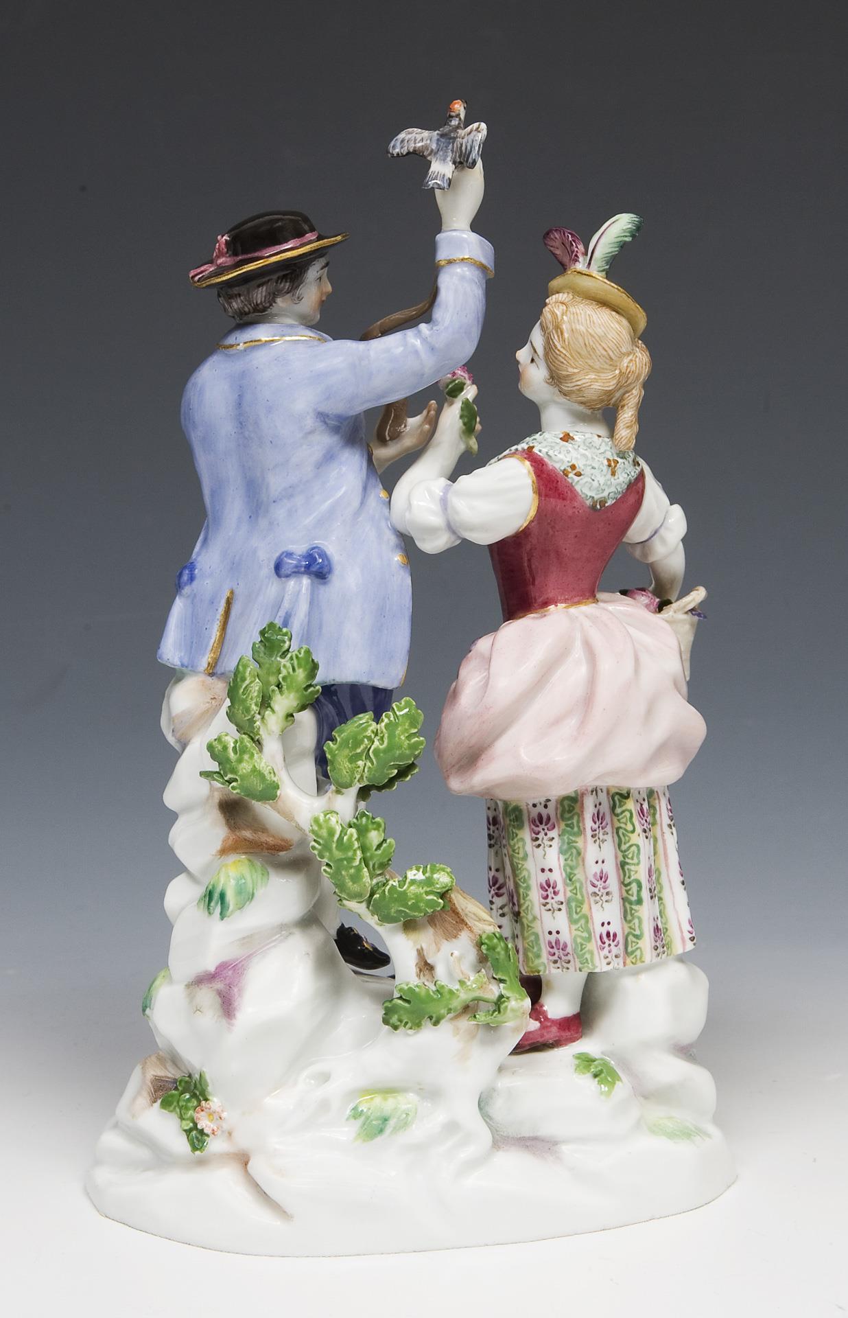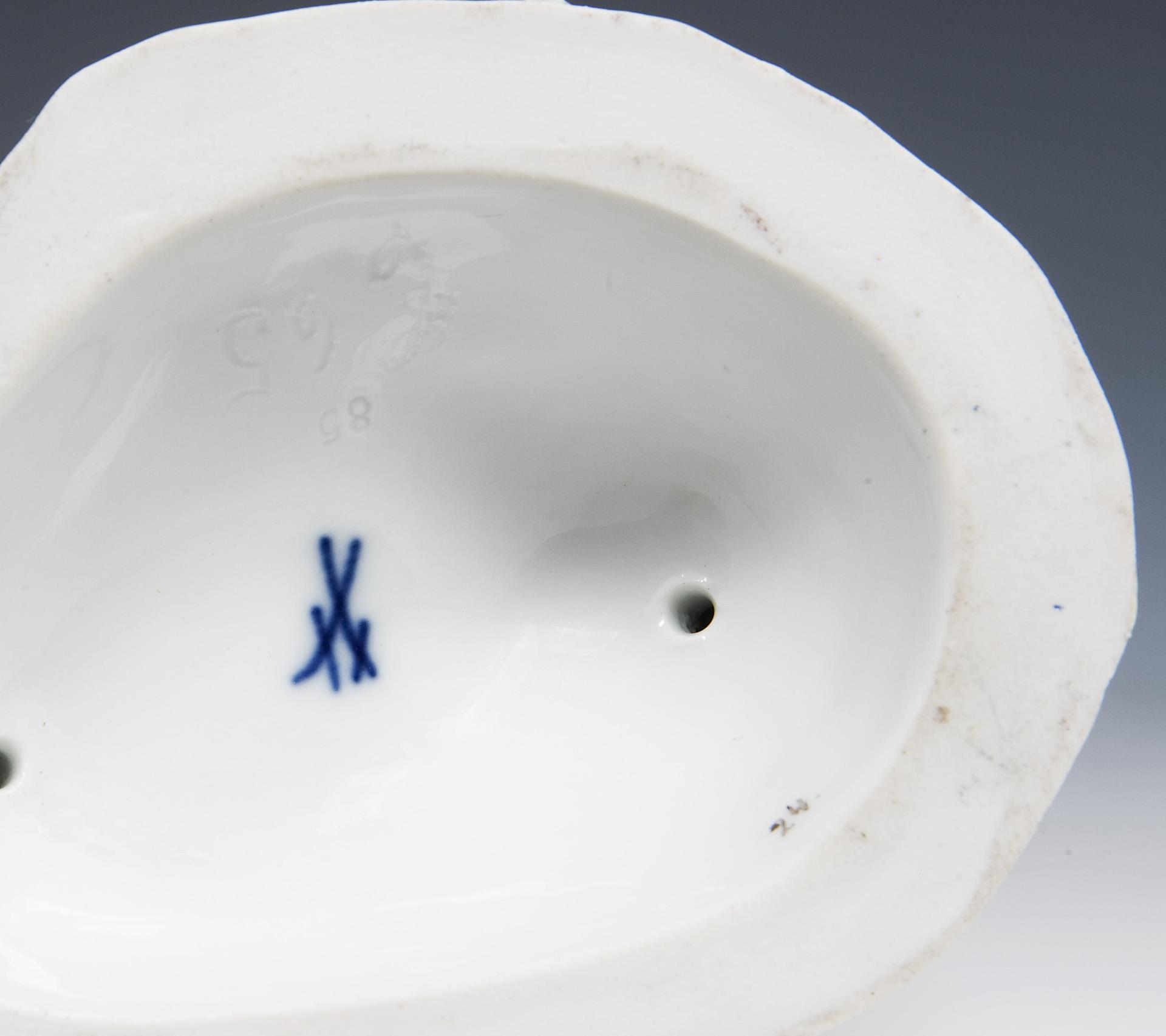 Modell-Jahr: 1772-1775, farbig bemalt, gold staffiert. Ritzmarke, Pressmarke, Malermarke, Schwertermarke. Band, Blätter restauriert.