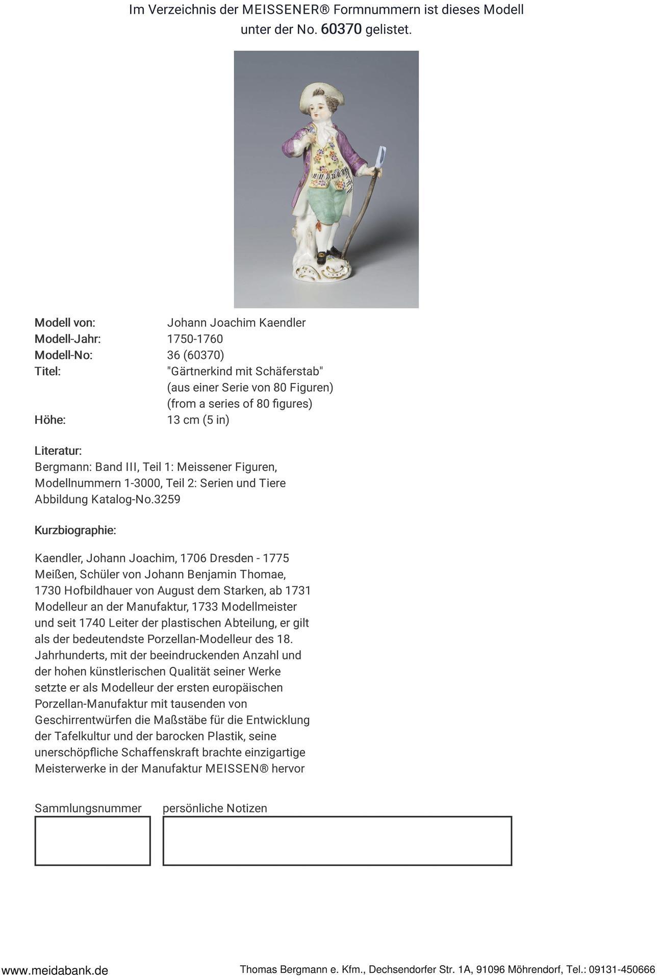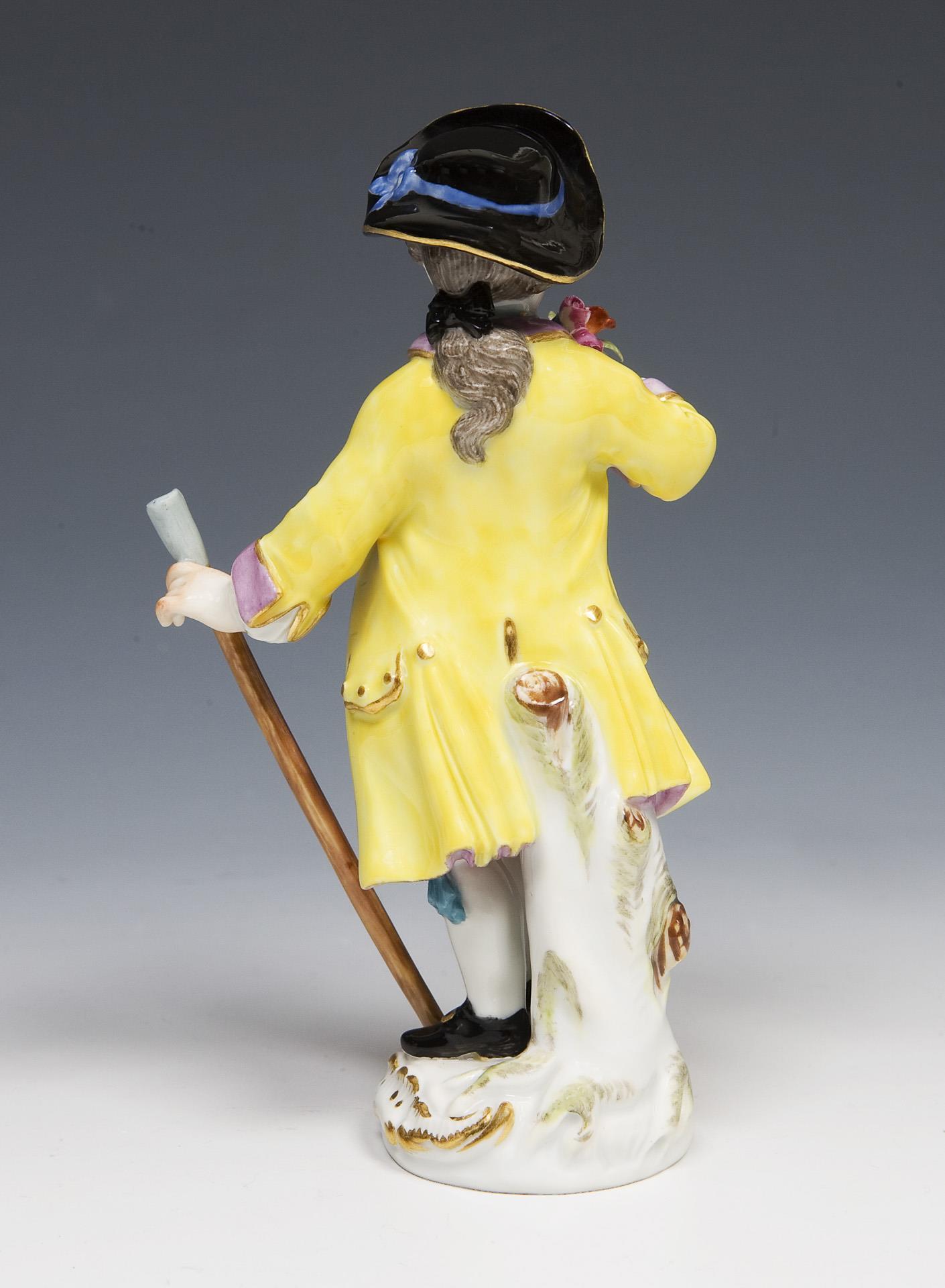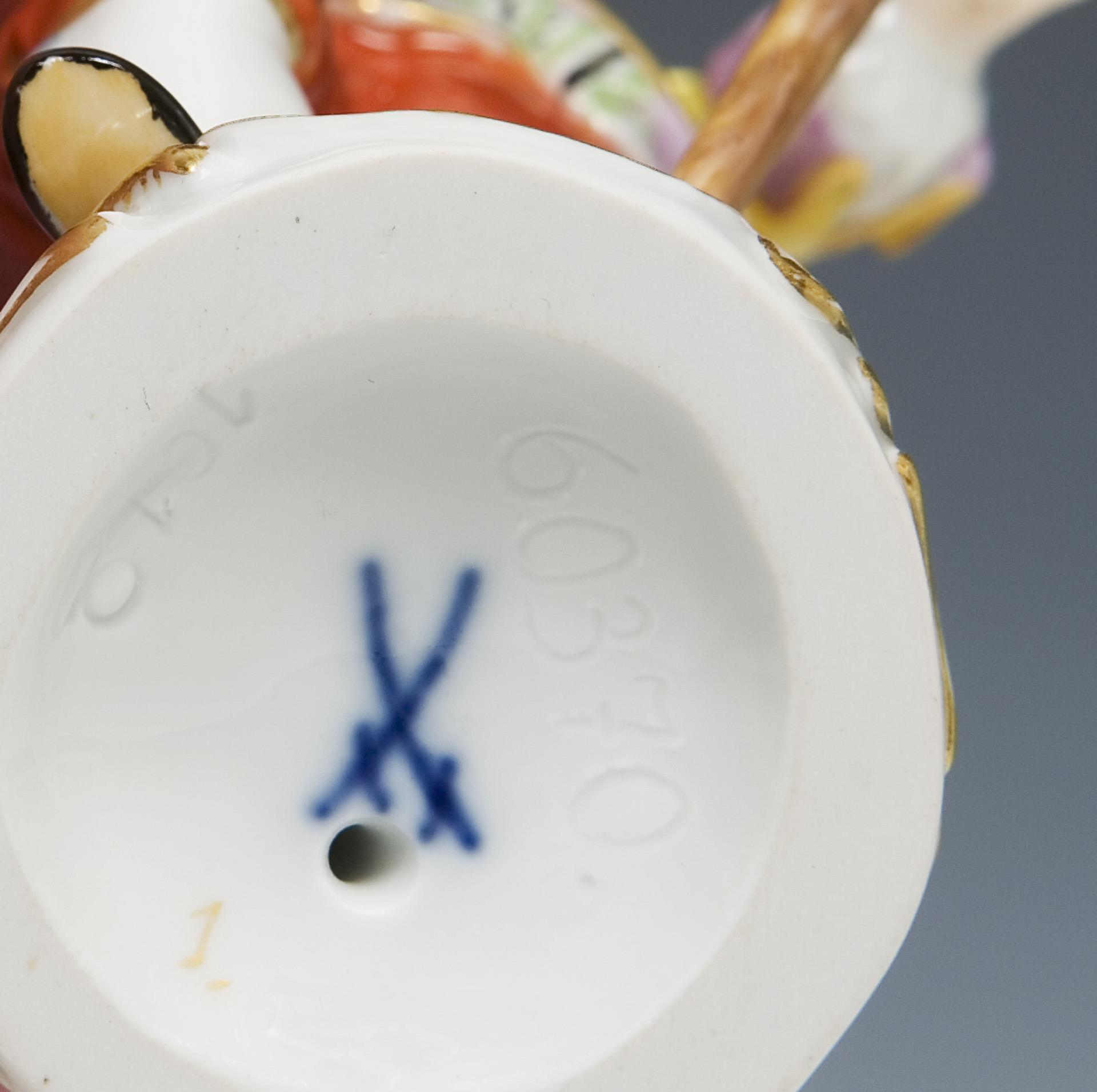 Modell-Jahr: 1750-1760, aus einer Serie von 80 Figuren, farbig bemalt, gold staffiert. Ritzmarke, Pressmarke, Malermarke, Schwertermarke. Ein Blumenstiel minimal bestoßen.