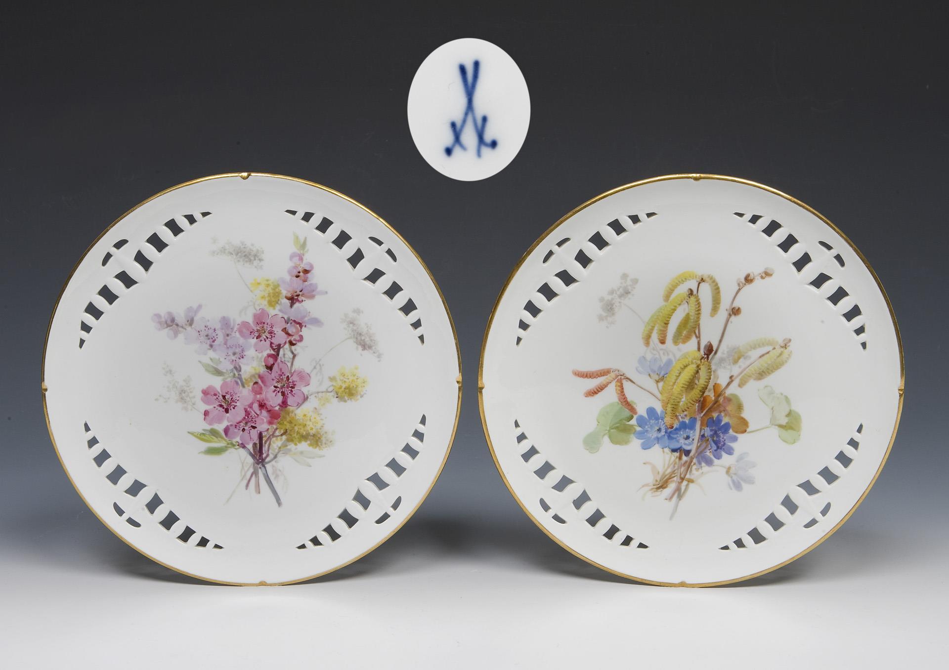 Paar seltene Jugendstil-Durchbruchteller. Meissen.