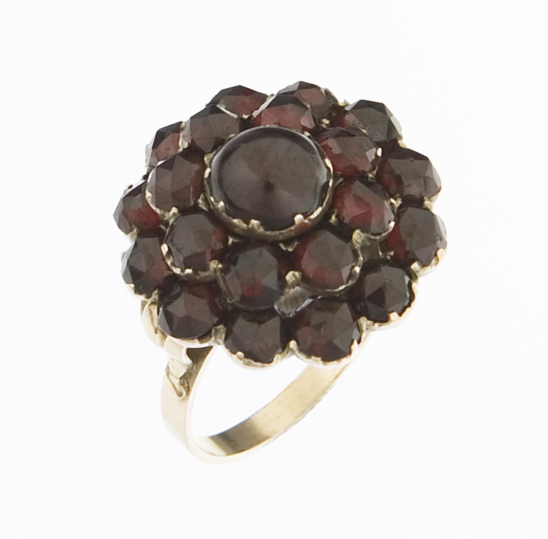 3-stufige gewölbte Rosettenform, stabile Schiene, Punzen: Feingehalt.