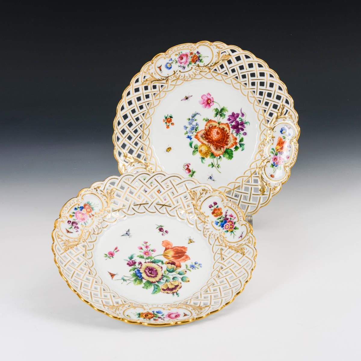 2 Durchbruchteller mit Blumenmalerei. Meissen.