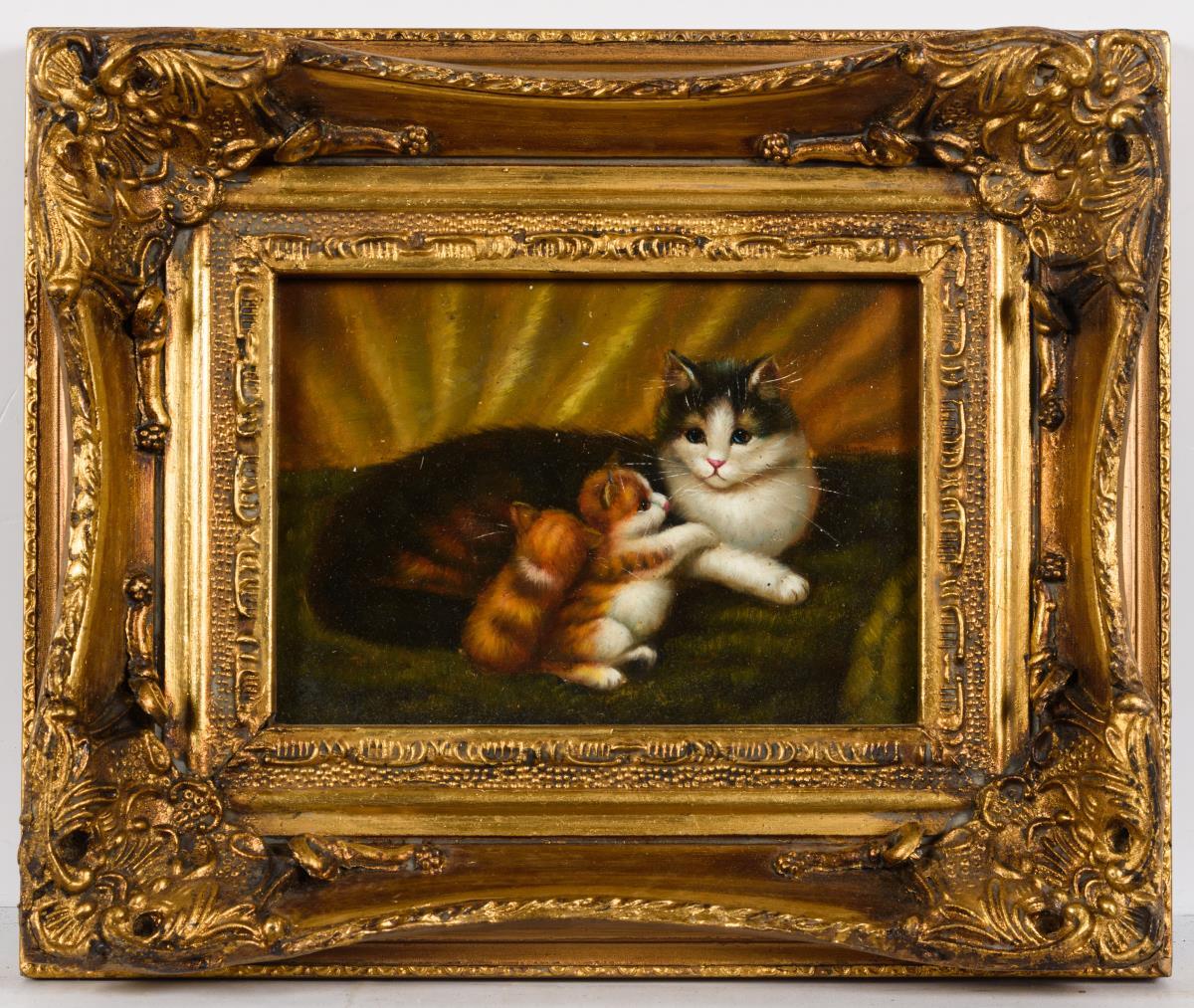 Subtil gemalte Katzenmutter mit 2 Katzenkindern.