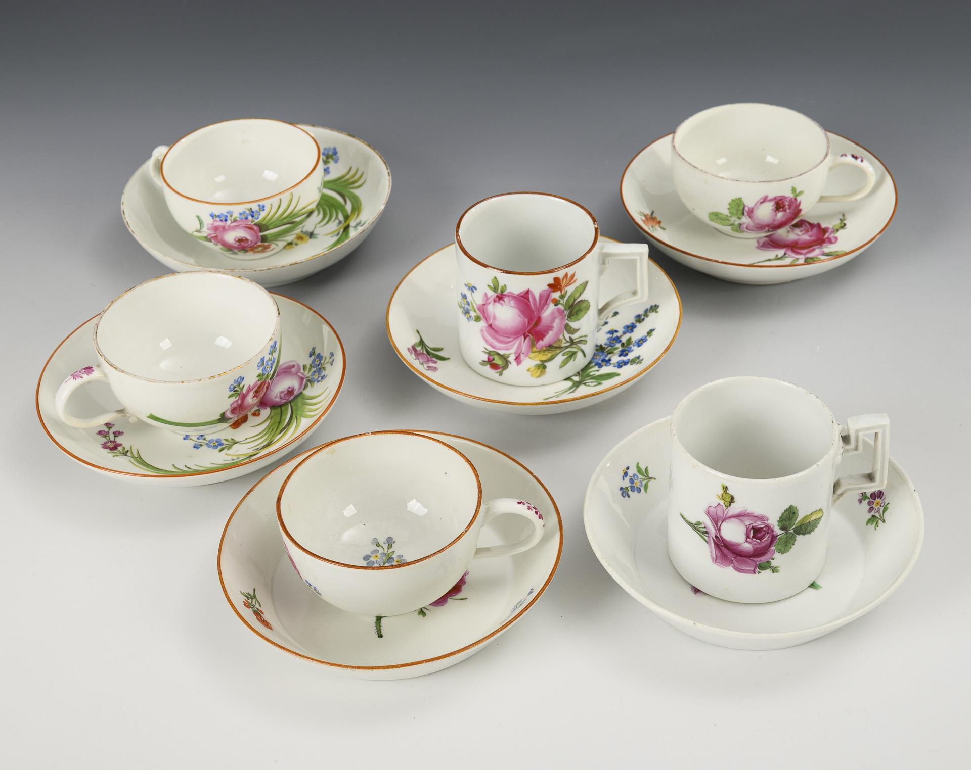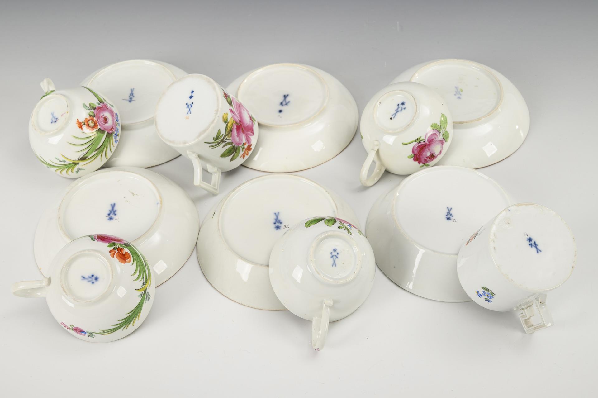 4+2 Tassen mit Blumenmalerei. Meissen.