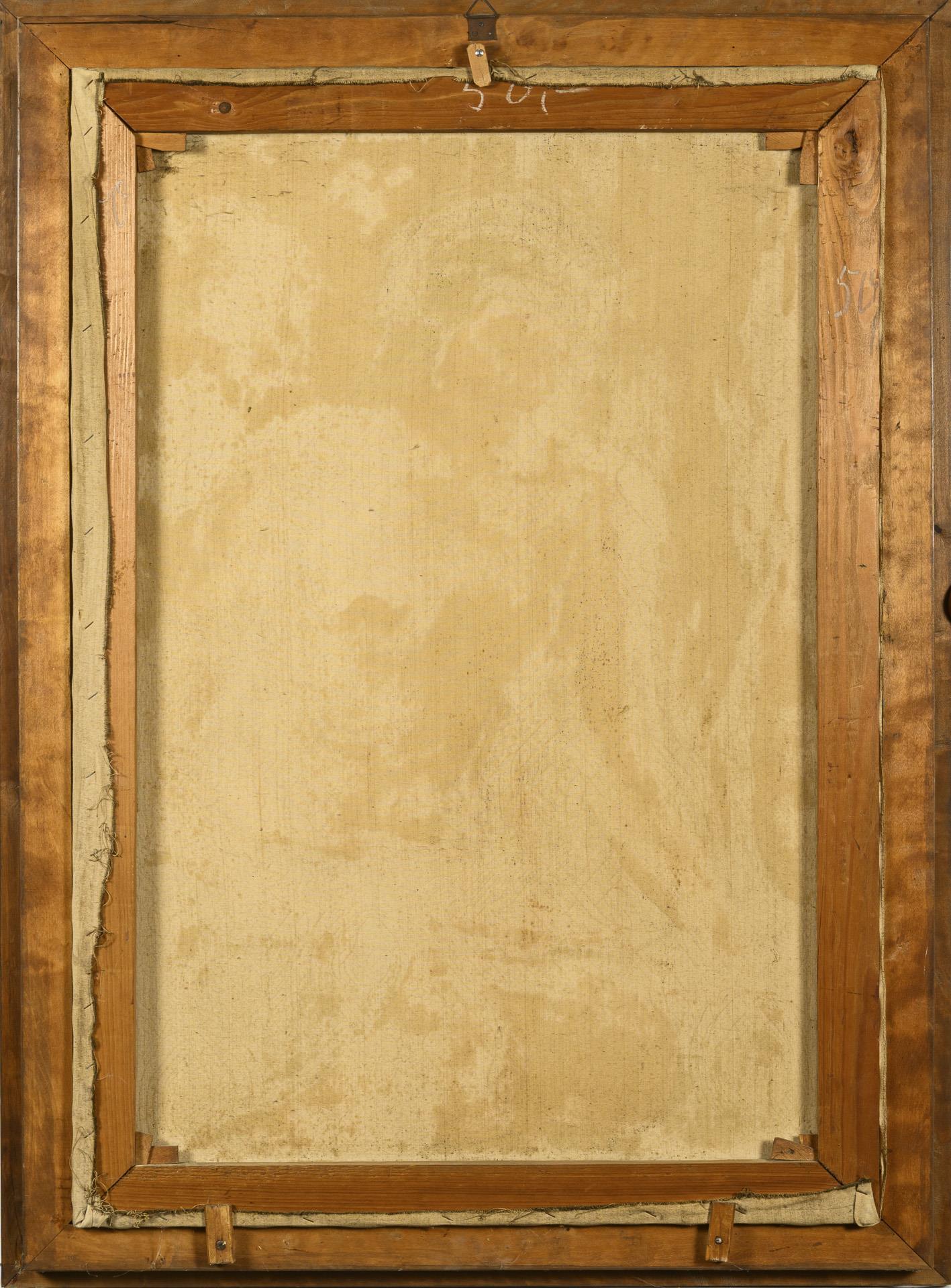100 x 70 cm. Gerahmt : 114 x 84 cm (profilierter Holzrahmen); 9,1 kg.