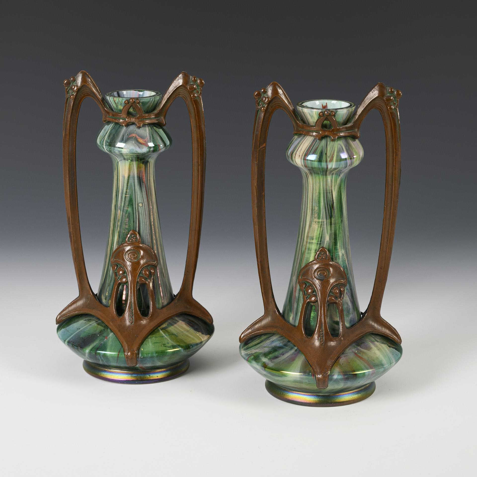 Paar Jugendstil-Vasen mit Kupfermontierung. Rindskopf's Söhne.