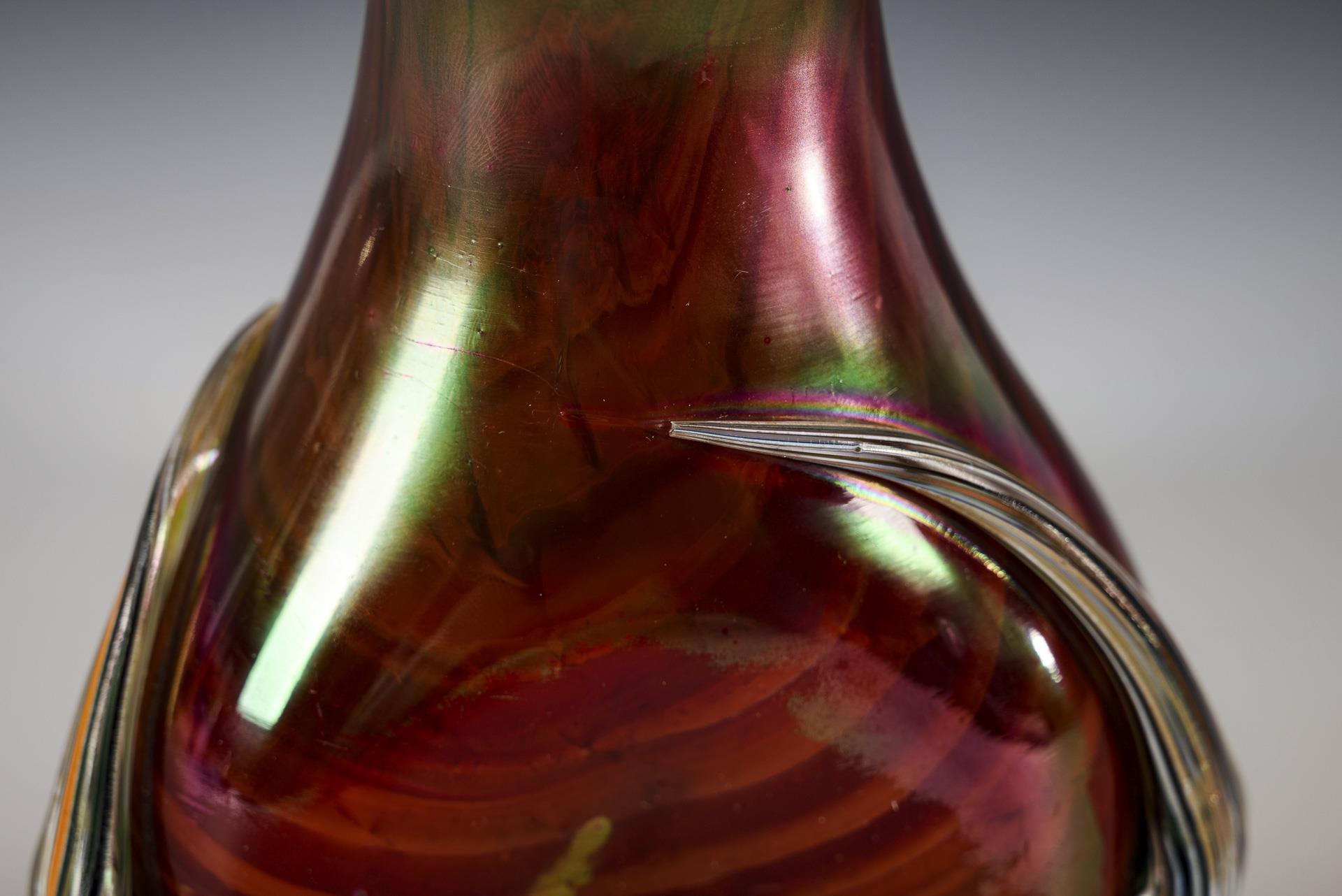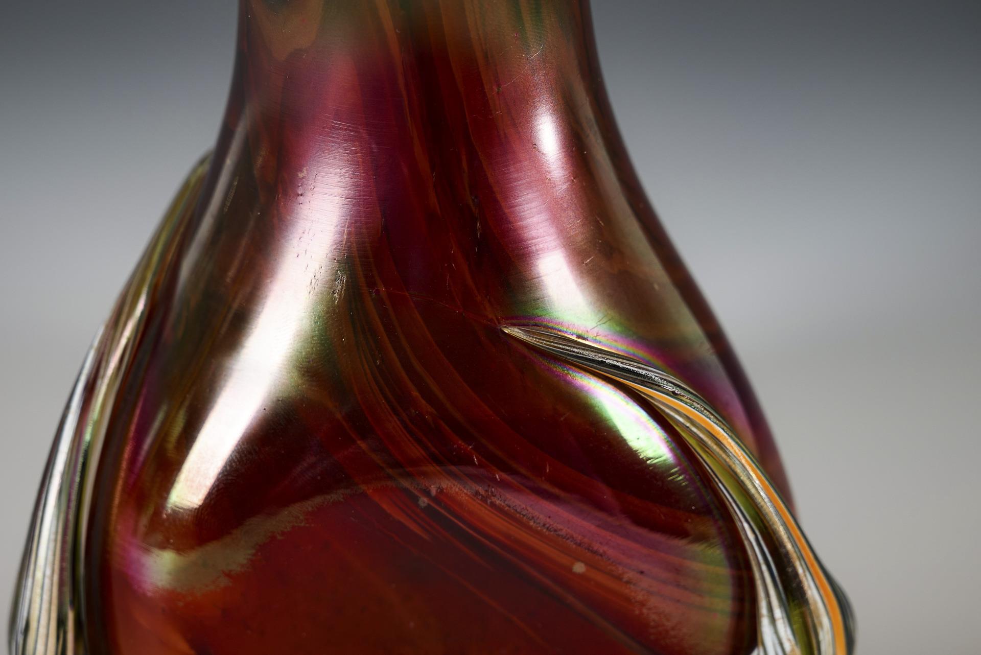 Lebrigrotes, marmoriertes Glas mit farbloser Deckschicht, irisiert. H 18,5 cm. 495 g.
