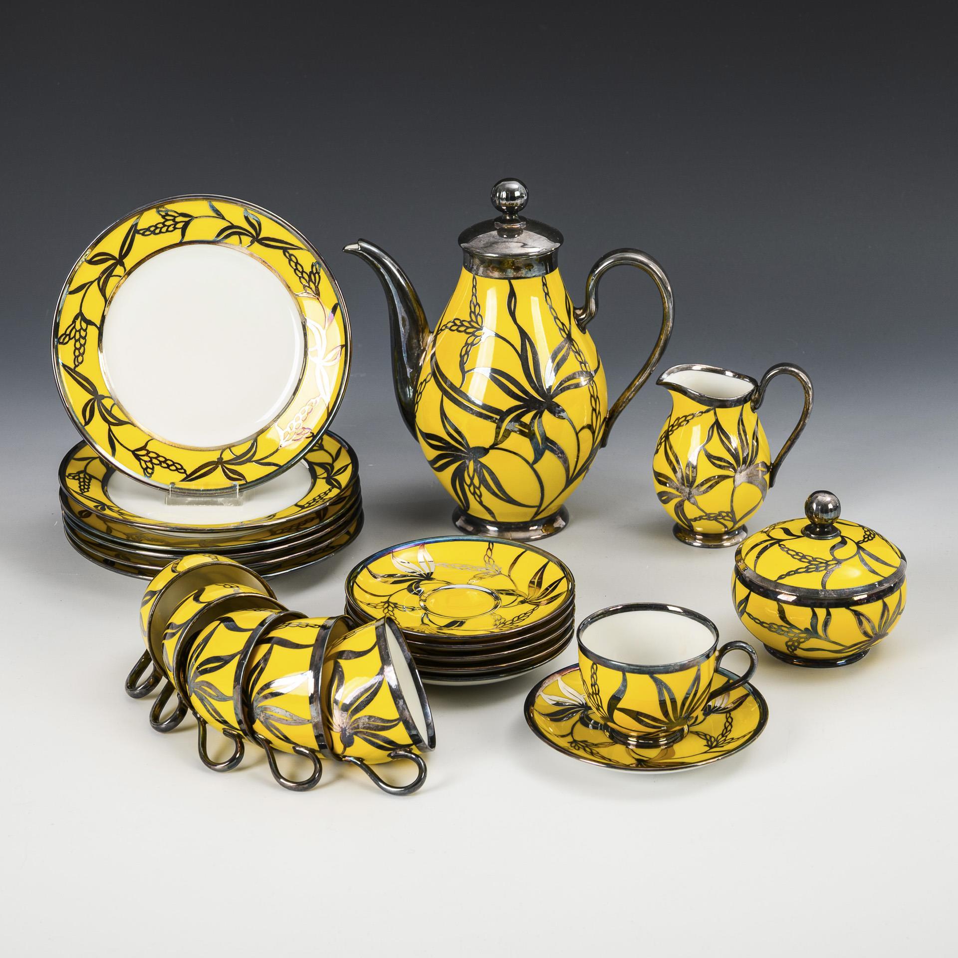 Mokkaservice "Elite" mit Silberoverlay. Hutschenreuther.