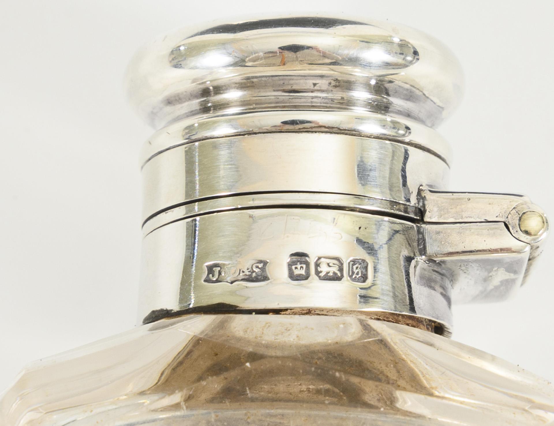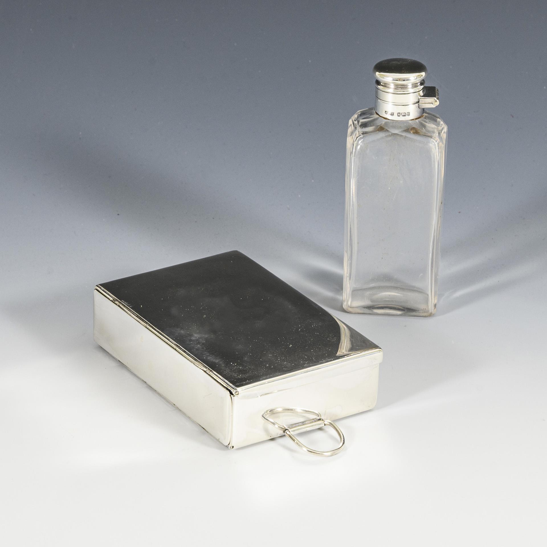 Jagd-Set mit glatter Silberdose (263 g) und Glasfäschchen mit Silberdeckel. Gebrauchsspuren.