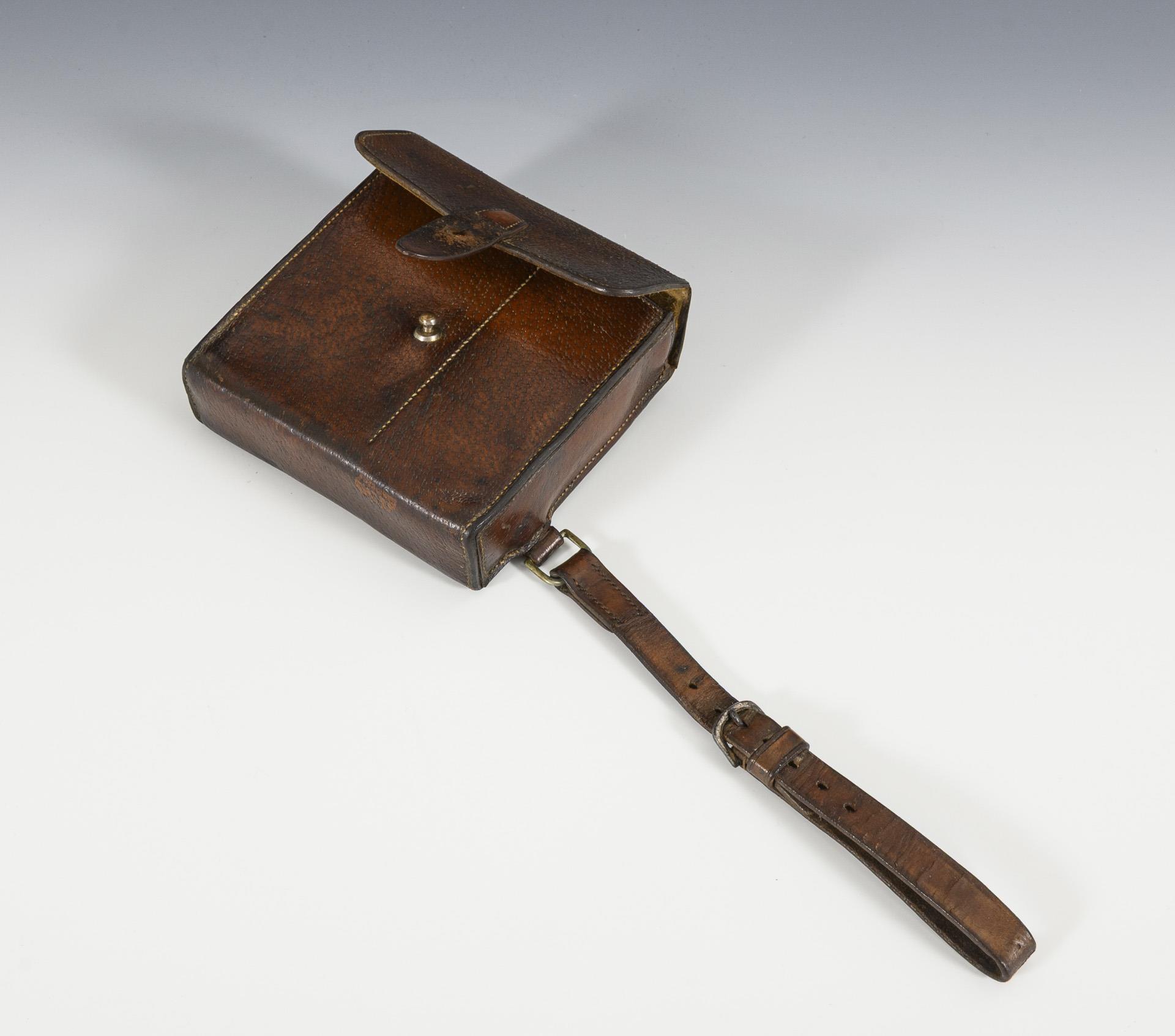 Ledertasche mit Silberdose und Flasche. James Dixon & Sons, Sheffield.