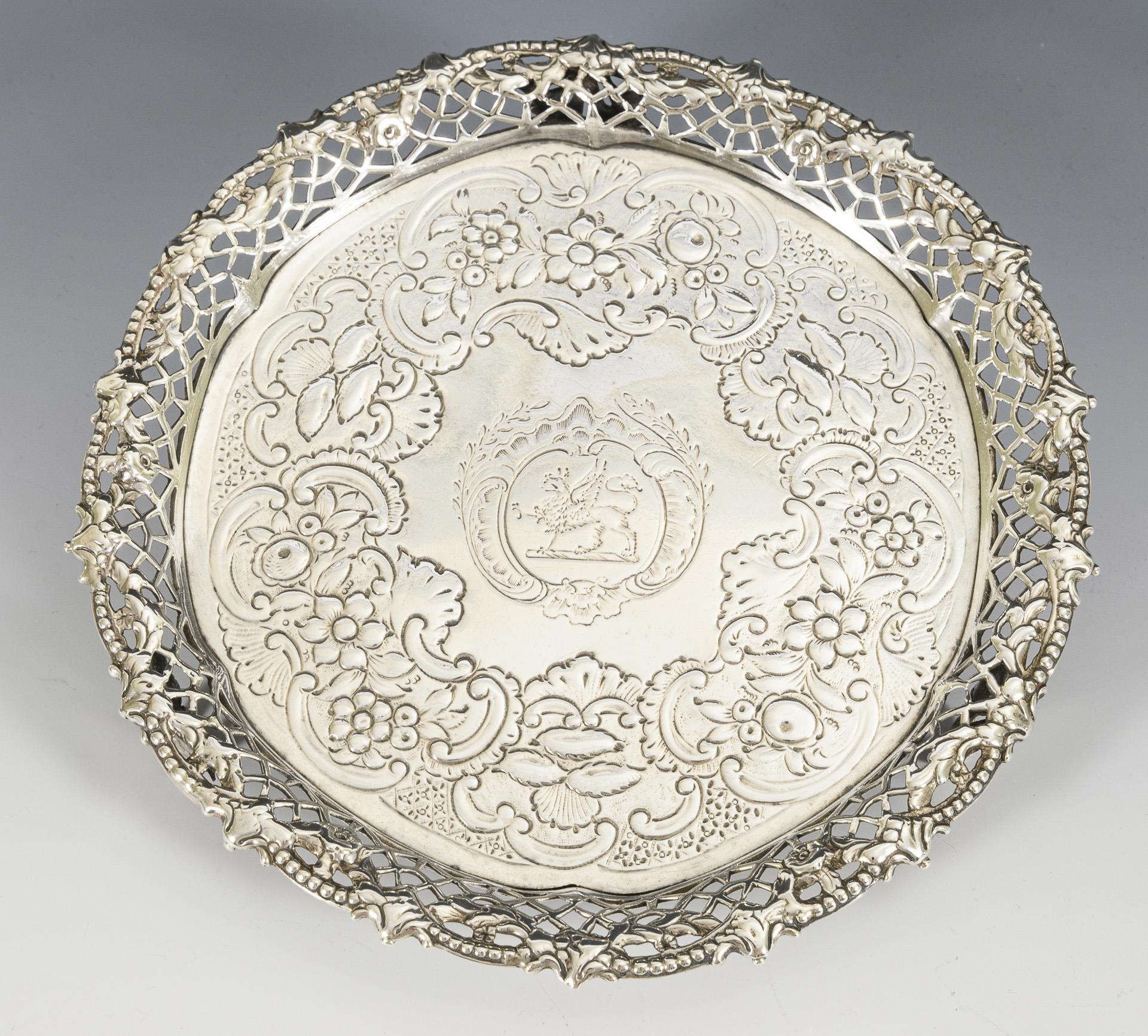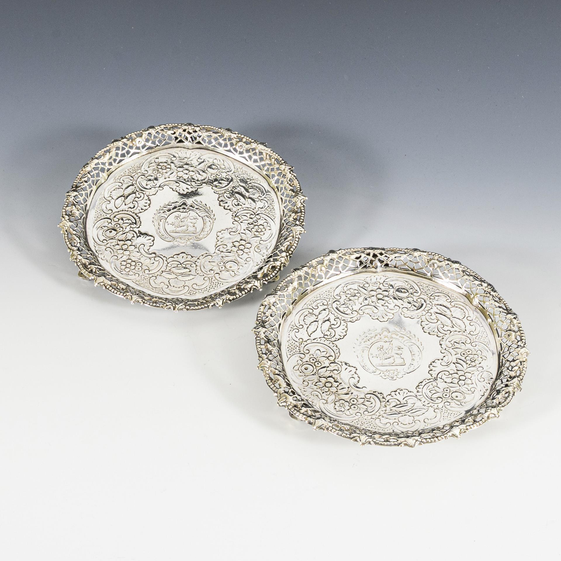 Floral verzierte und gravierte Untersetzer mit gegossenem Rand.