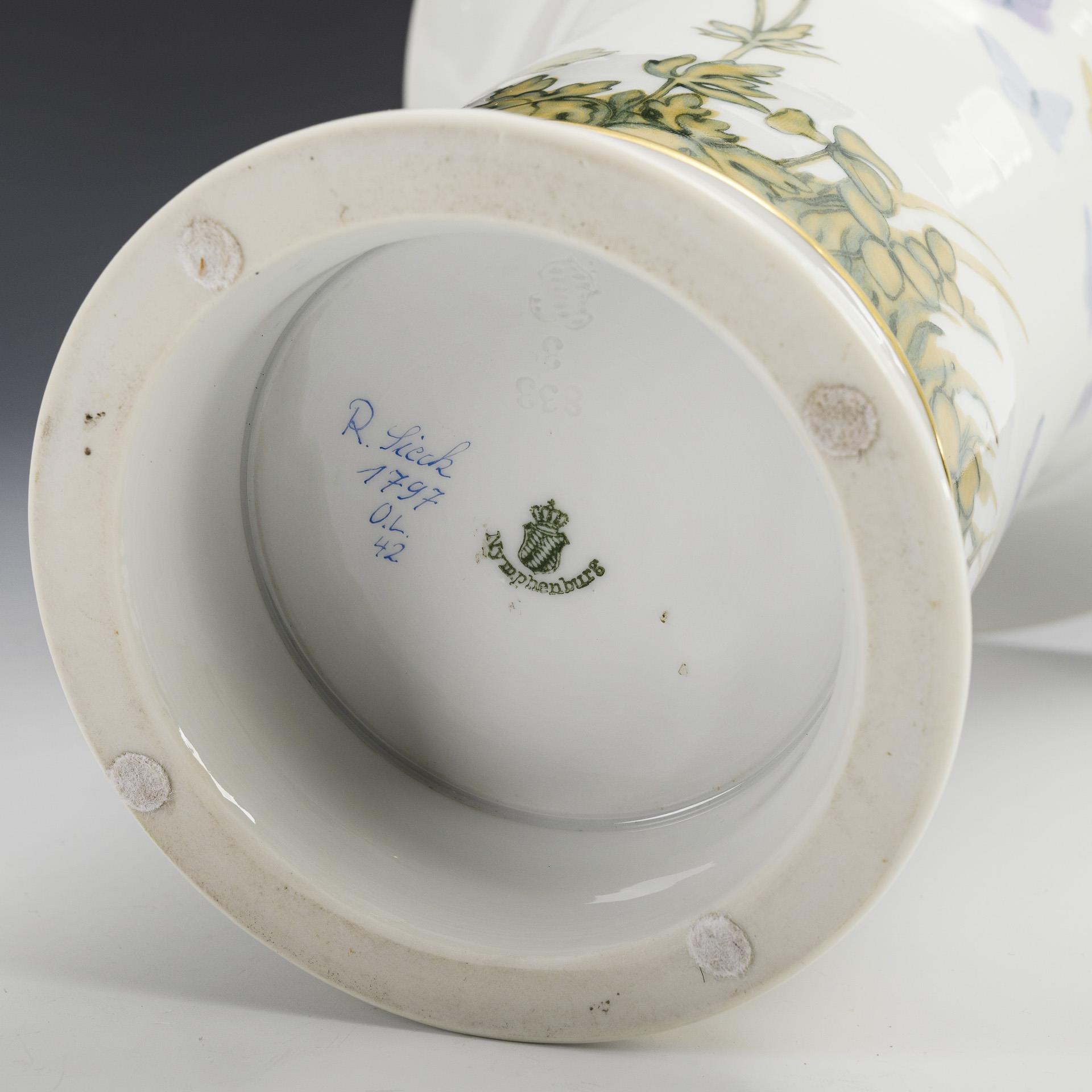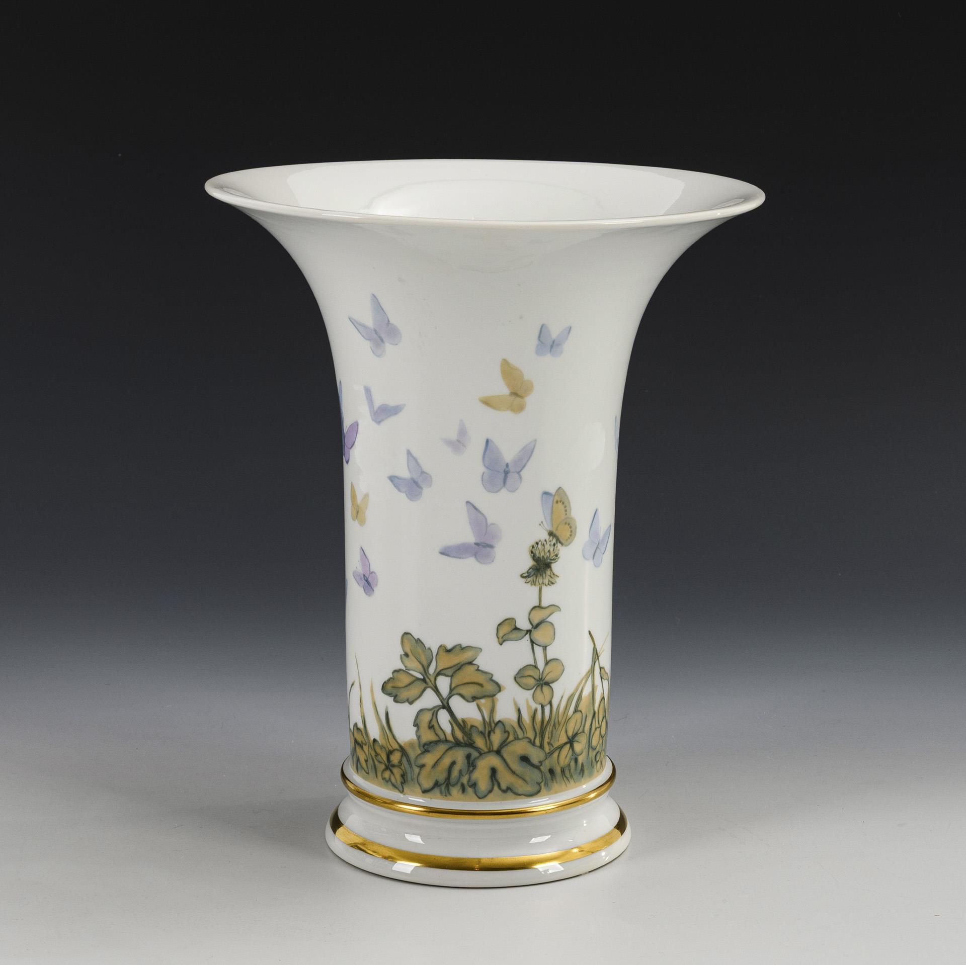 Kratervase mit Blumen- und Schmetterlingsmalerei. Nymphenburg.