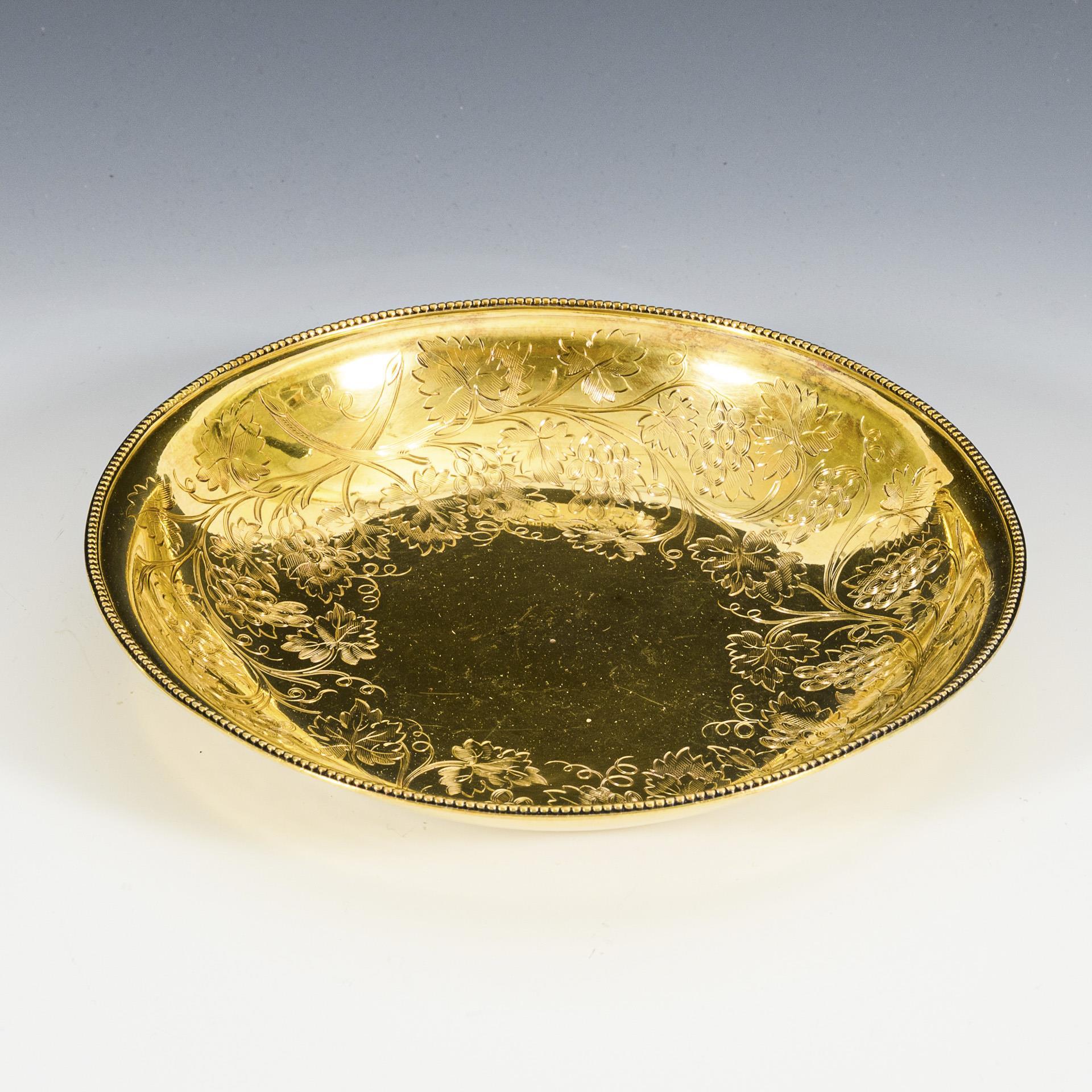 Sterlingsilber, vergoldet. H 3,5 cm, Durchmesser 21,5 cm. 280 g.