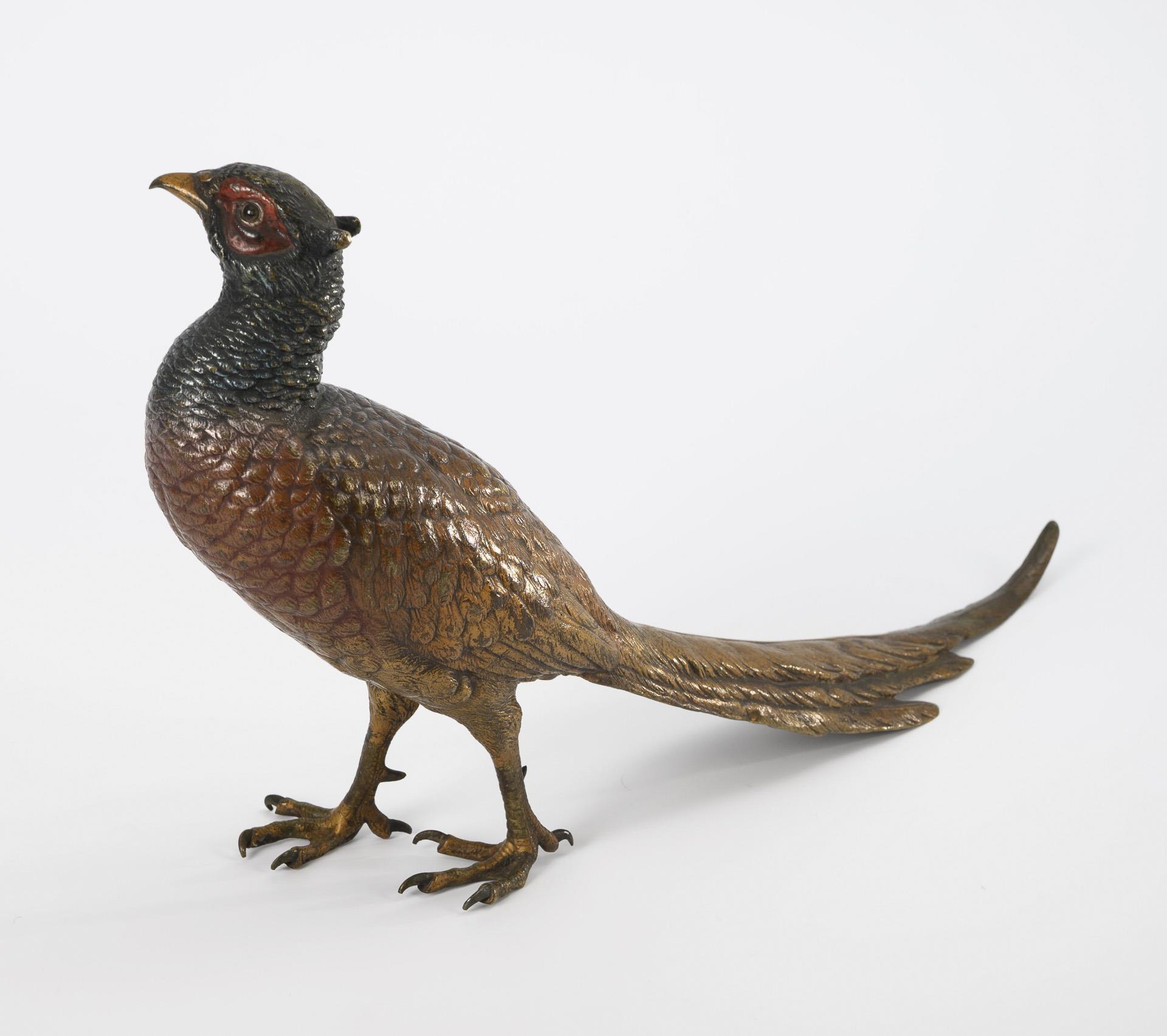 Bronze polychrom gefasst. Vasenmarke Bergmann. H 19,5 cm, L 35 cm.