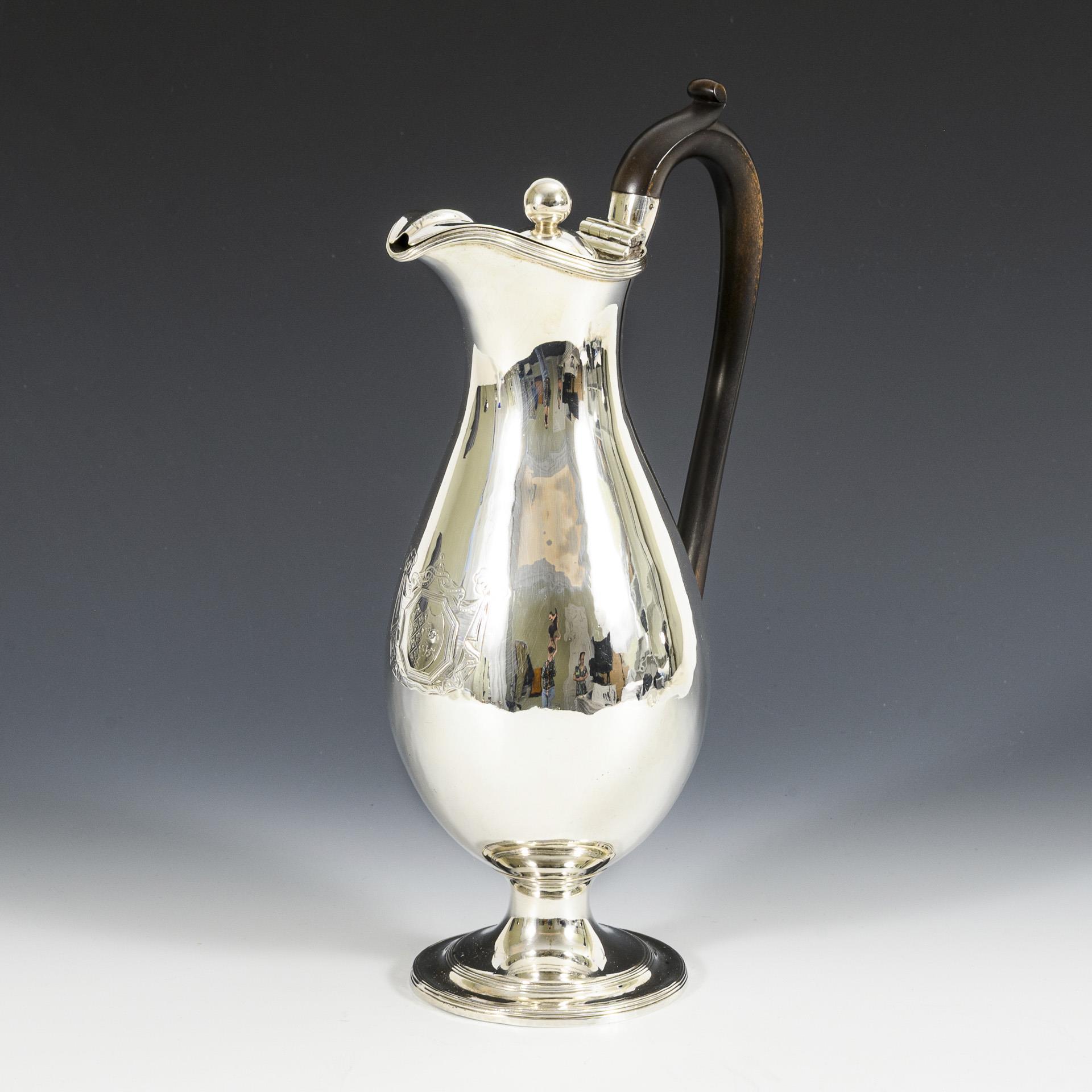 Schlanke Balusterform mit Wappengravur und ebonisiertem Holzhenkel. Korpus minimal gedellt.