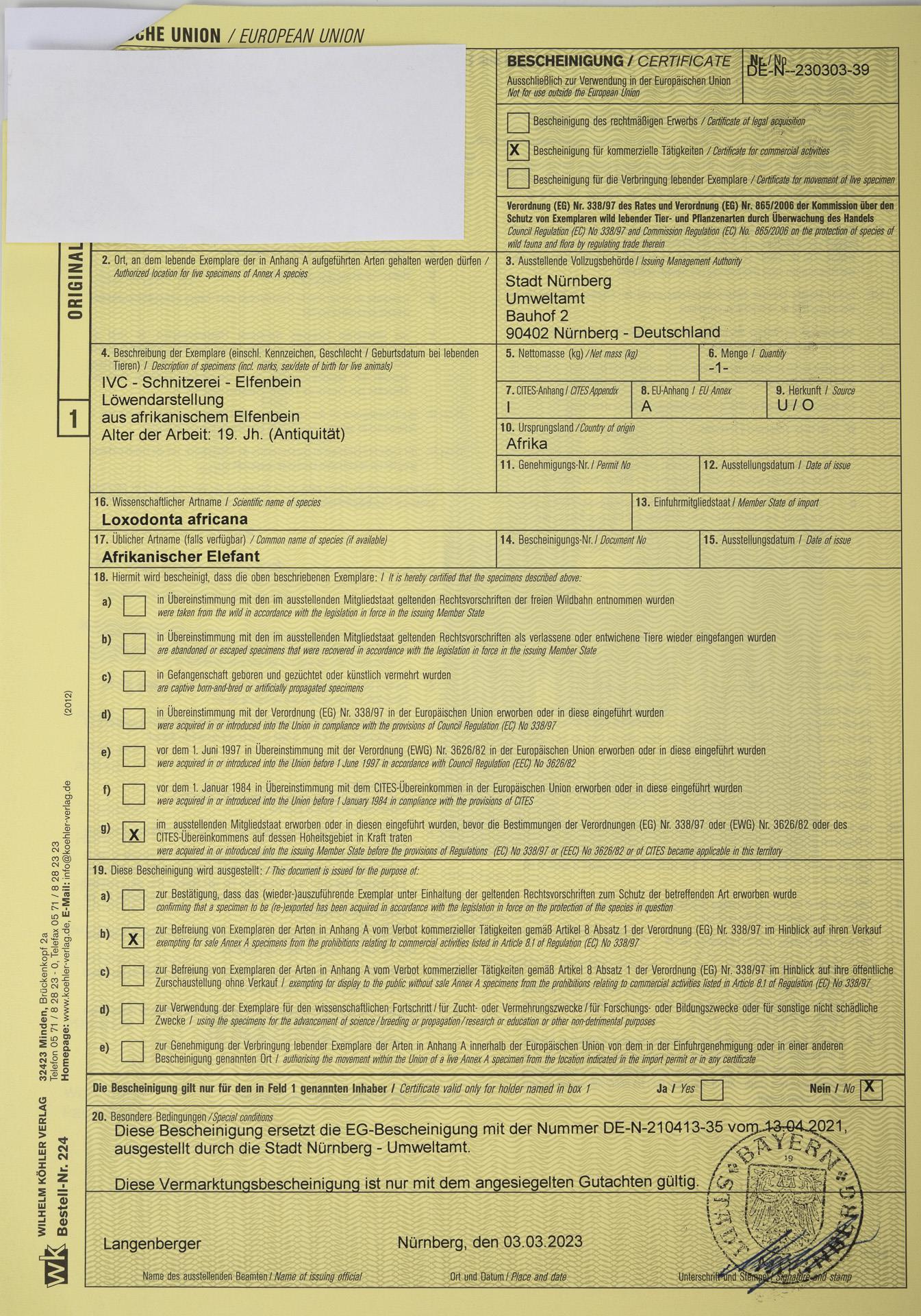 EU-Handelsgenehmigung liegt vor. Gutachten von Rainer Bücking Erlangen.