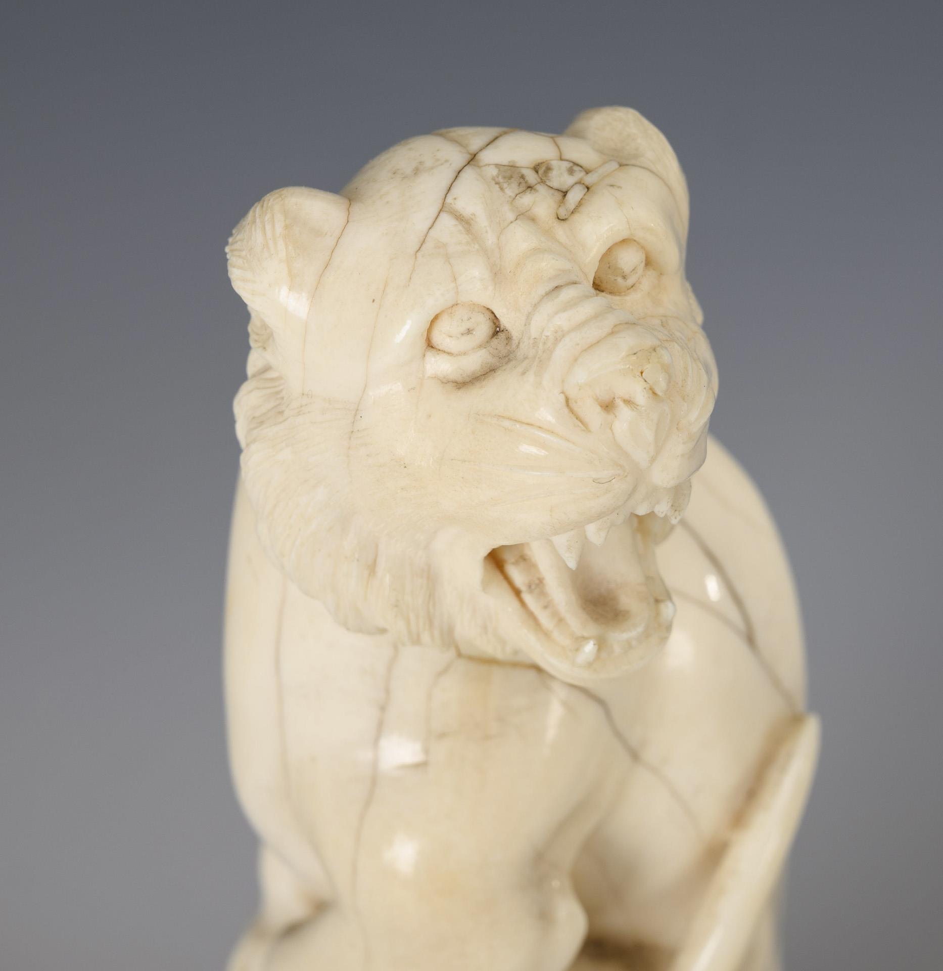 Elfenbeinschnitzerei: Sitzender Löwe
