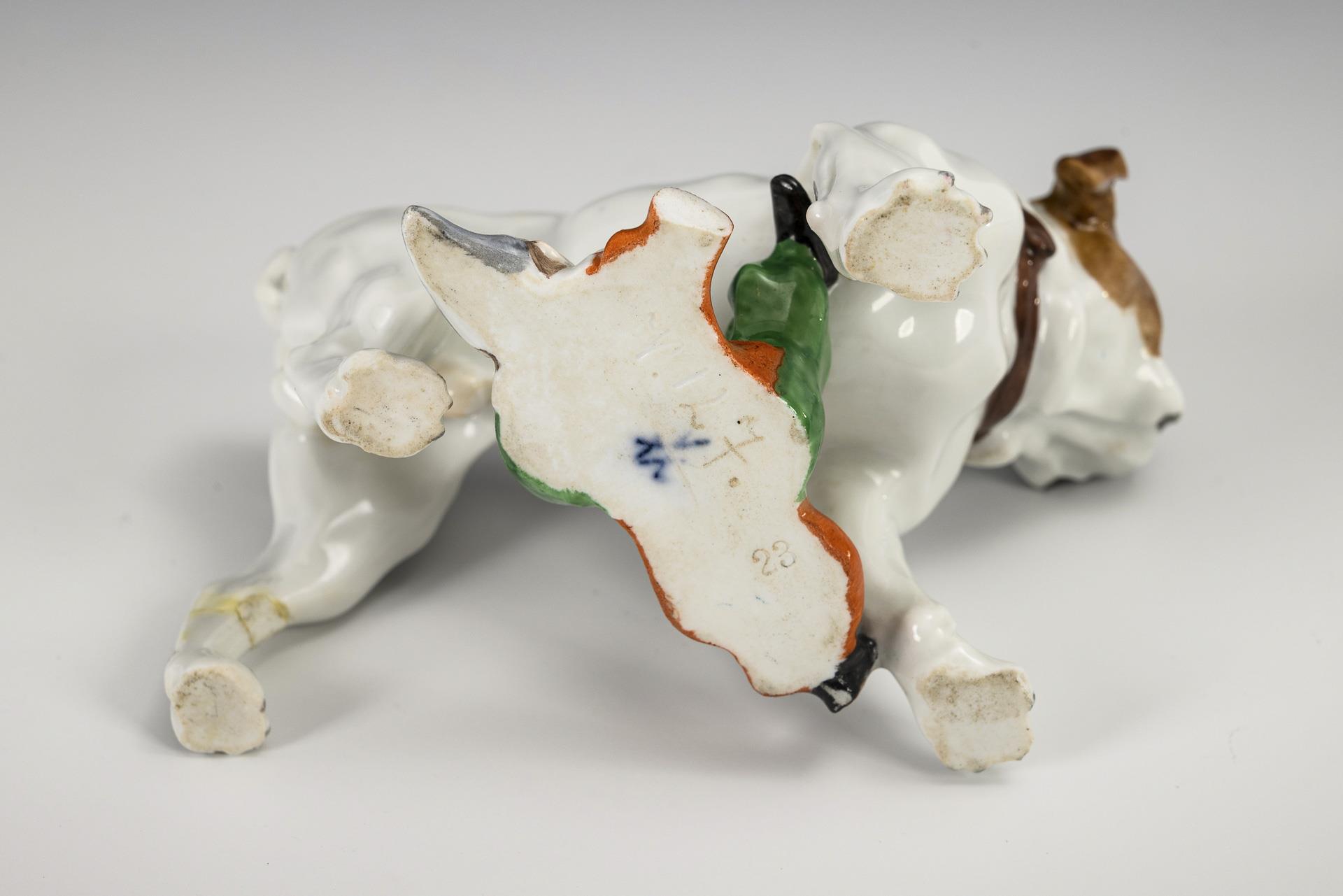 Bulldogge mit Harlekin. Meissen.