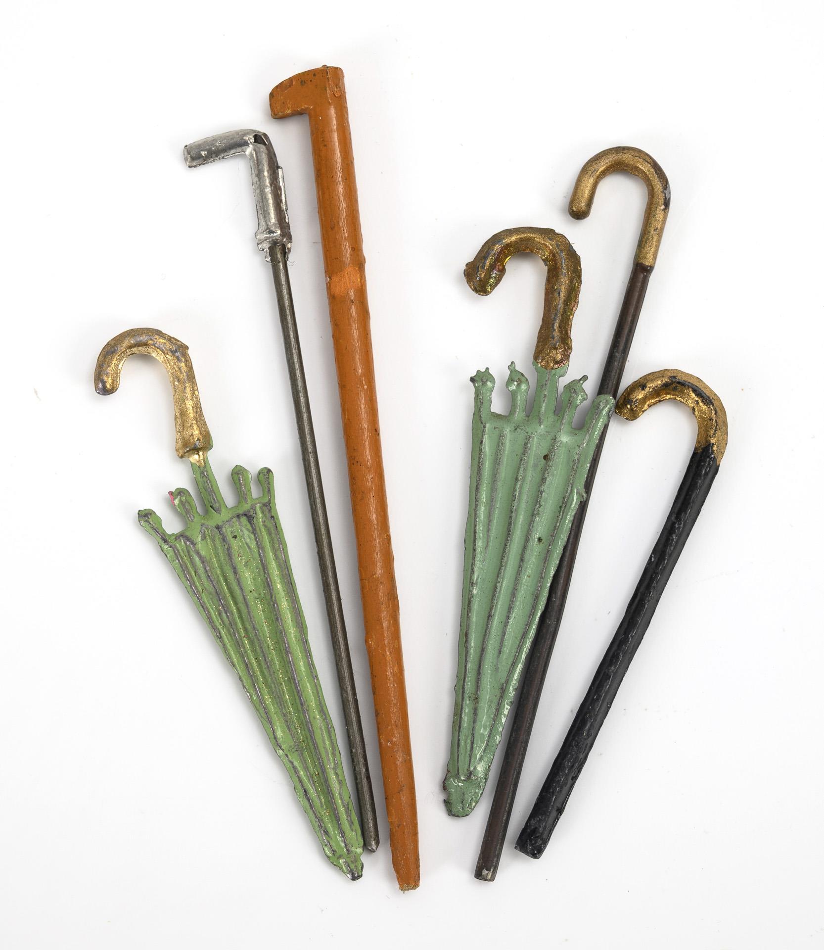 Stofflampe, Regulator, Klöppelstock, Stickrahmen, Schirmständer, 2 Küchenuhren, verschiedene Schächtelchen, Glas etc. Teils mit Defekten und Ergänzungen.