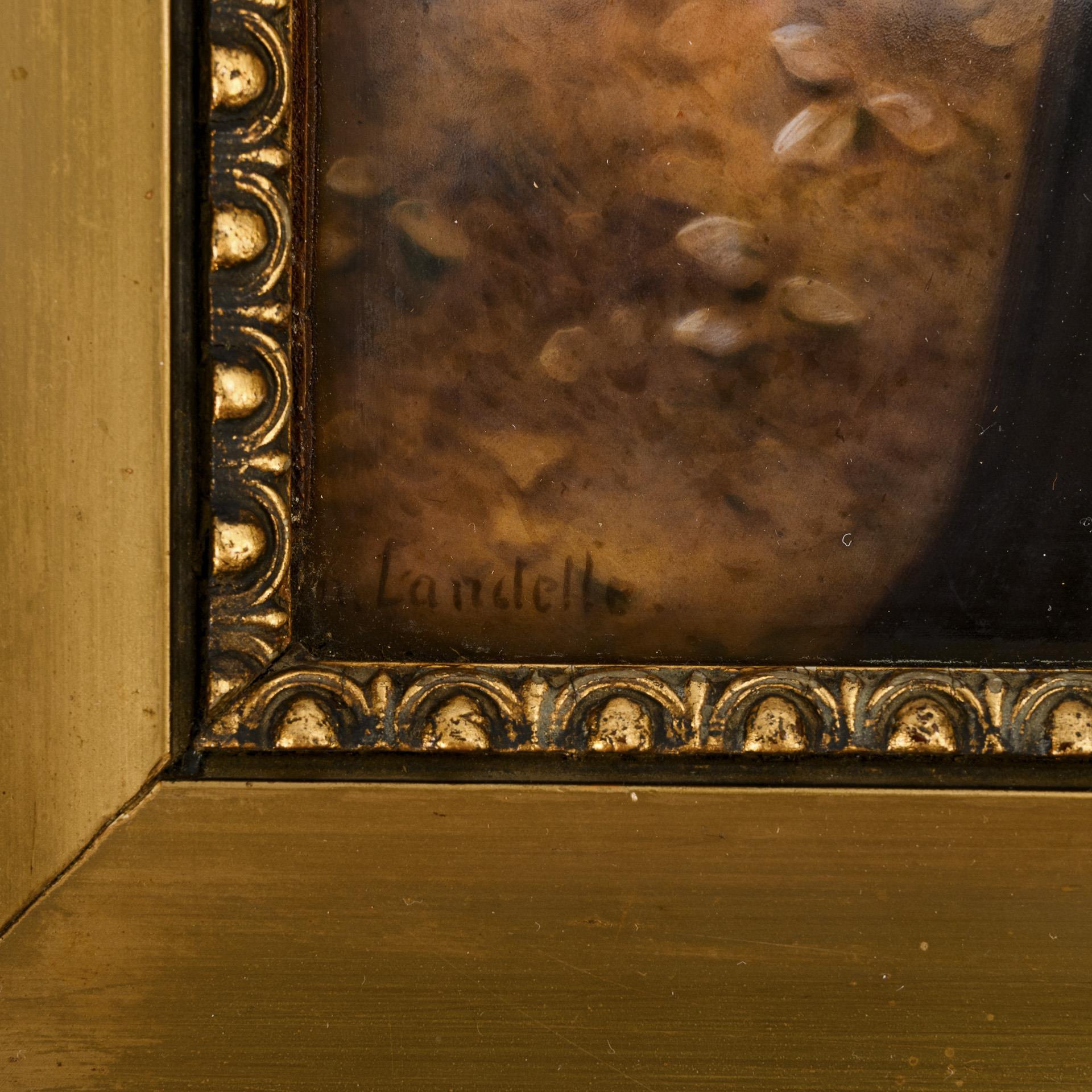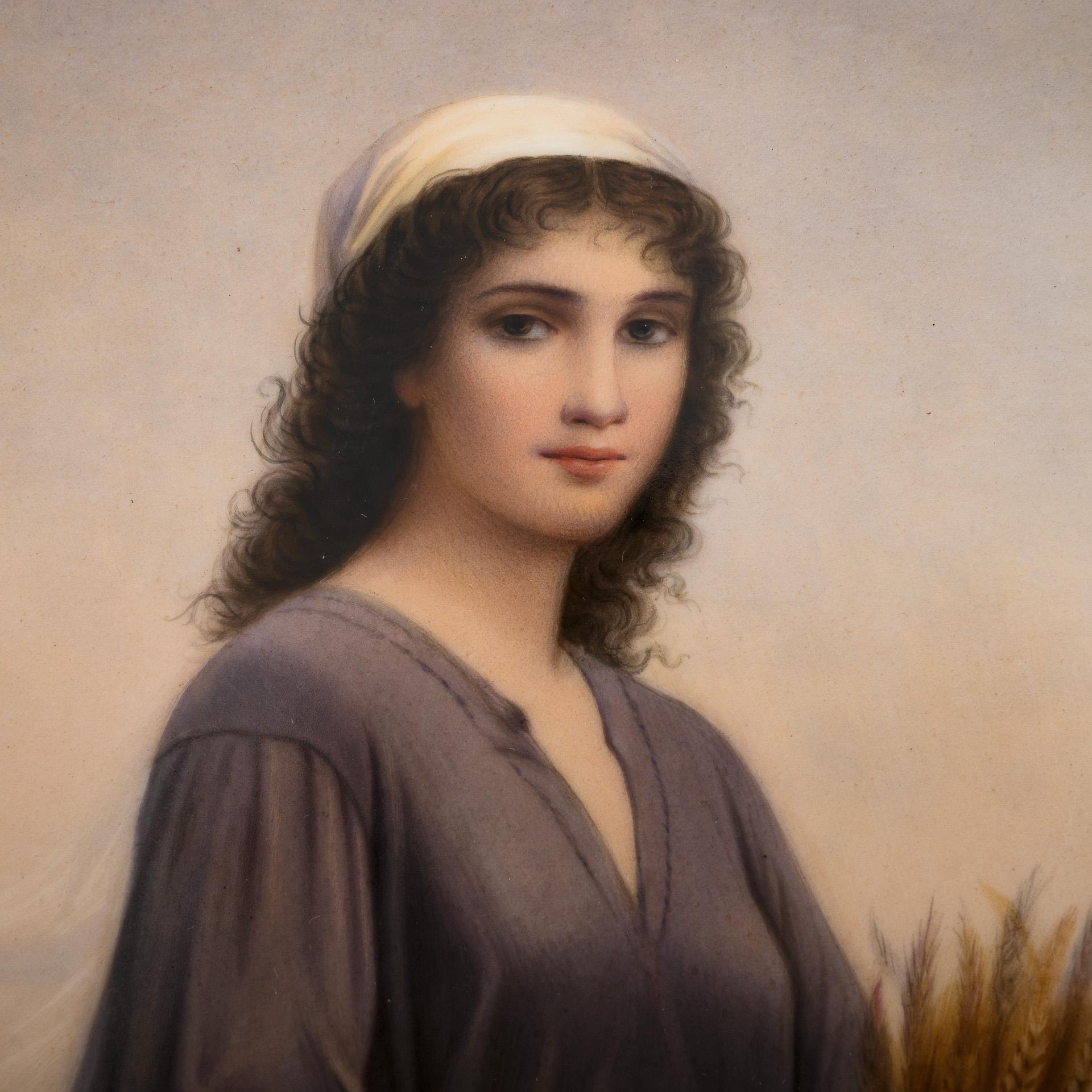 Rechteckige Platte mit der Darstellung einer jungen Frau beim Ährenlesen, nach einem Gemälde von Charles Zacharie Landelle (1821-1908), bezeichnet "Landelle".