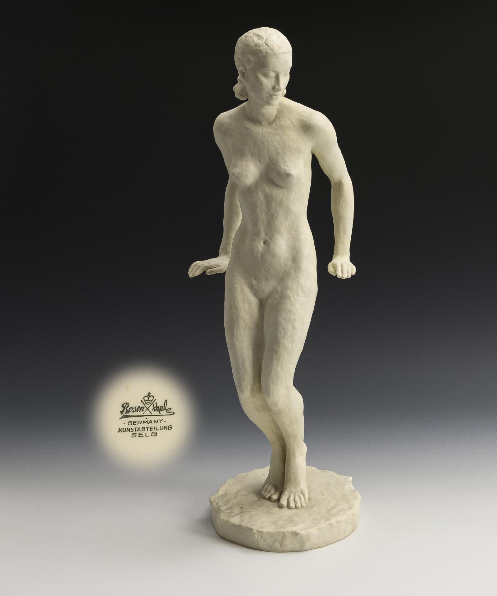 Große Biskuitfigur eines Frauenaktes. Linker Arm restauriert.
