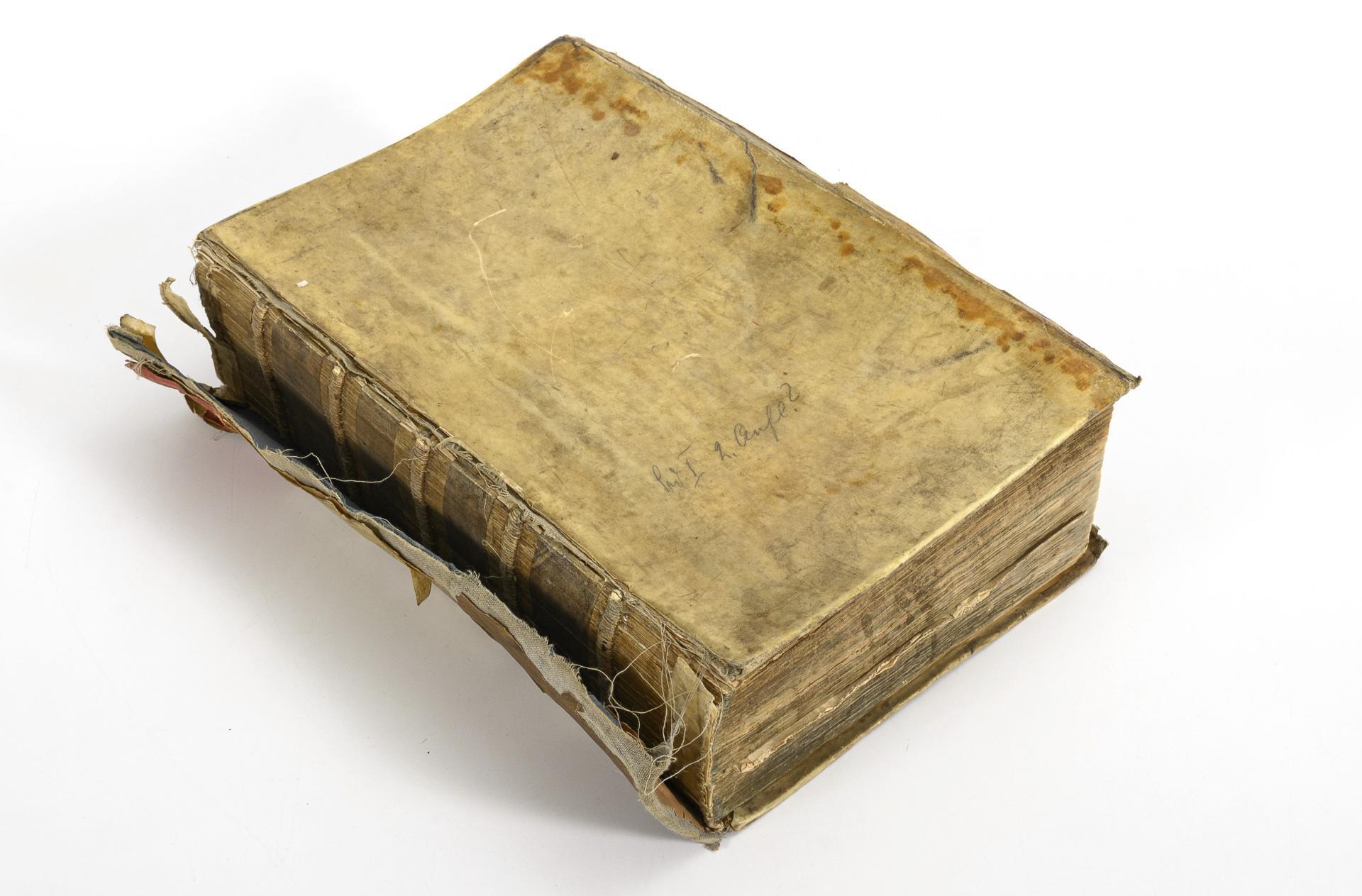 Wohl nicht ganz vollständig, nicht kollationiert. Im defekten Pergamenteinband, Rücken lose. Wenige Abbildungen lose