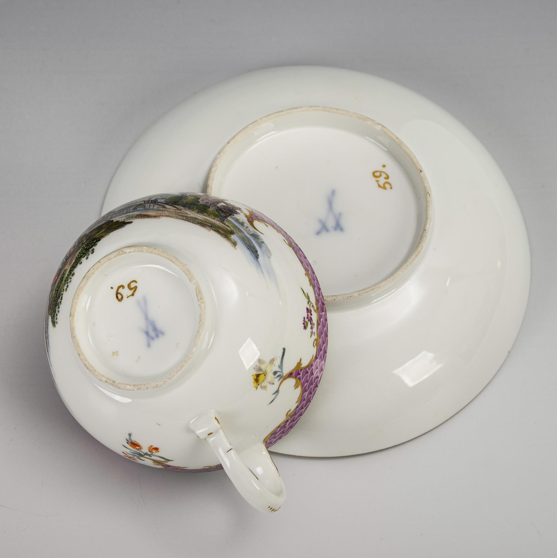 Schwertermarke, um 1750, Goldmalerziffer "59" auf Tasse und Untertasse.
