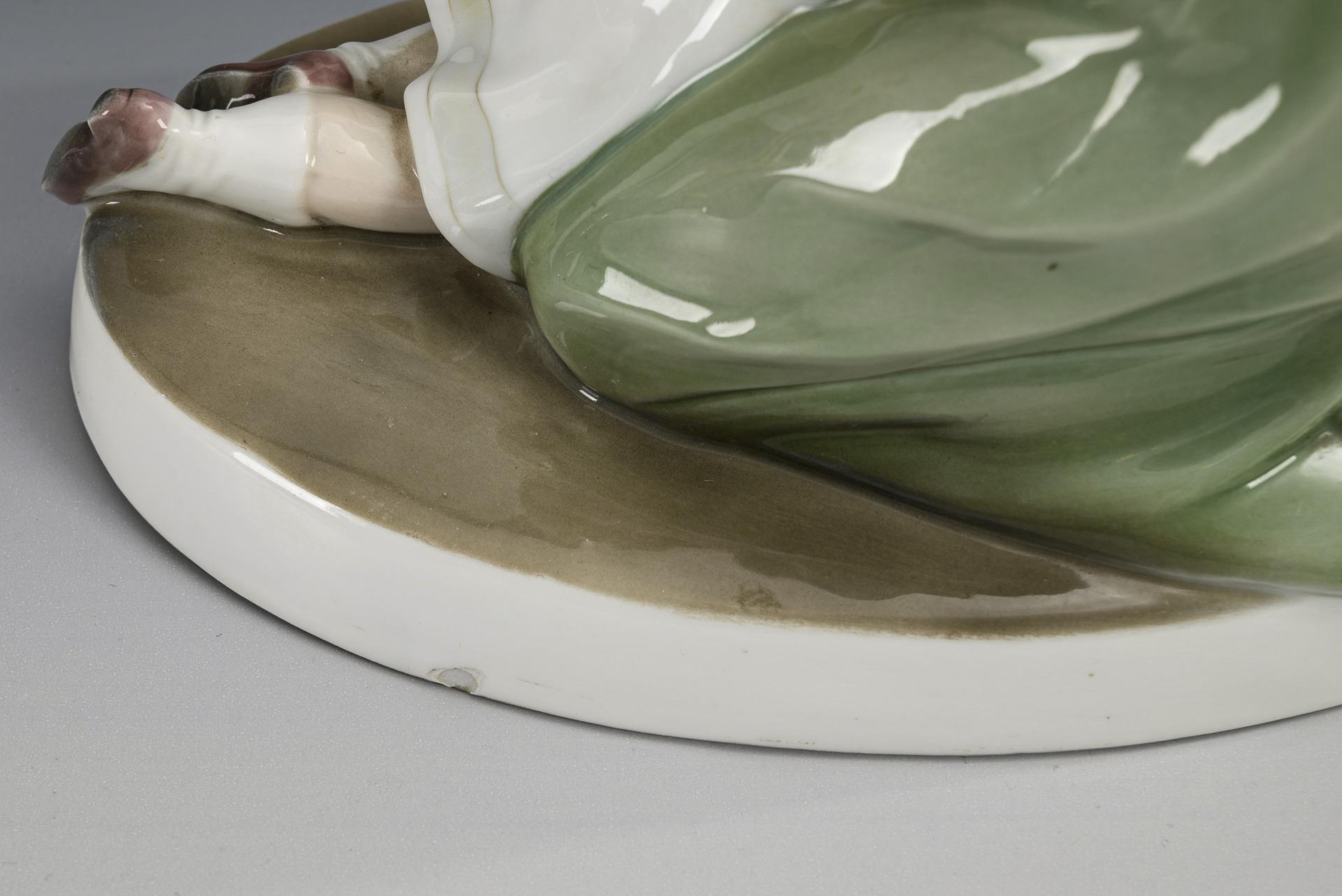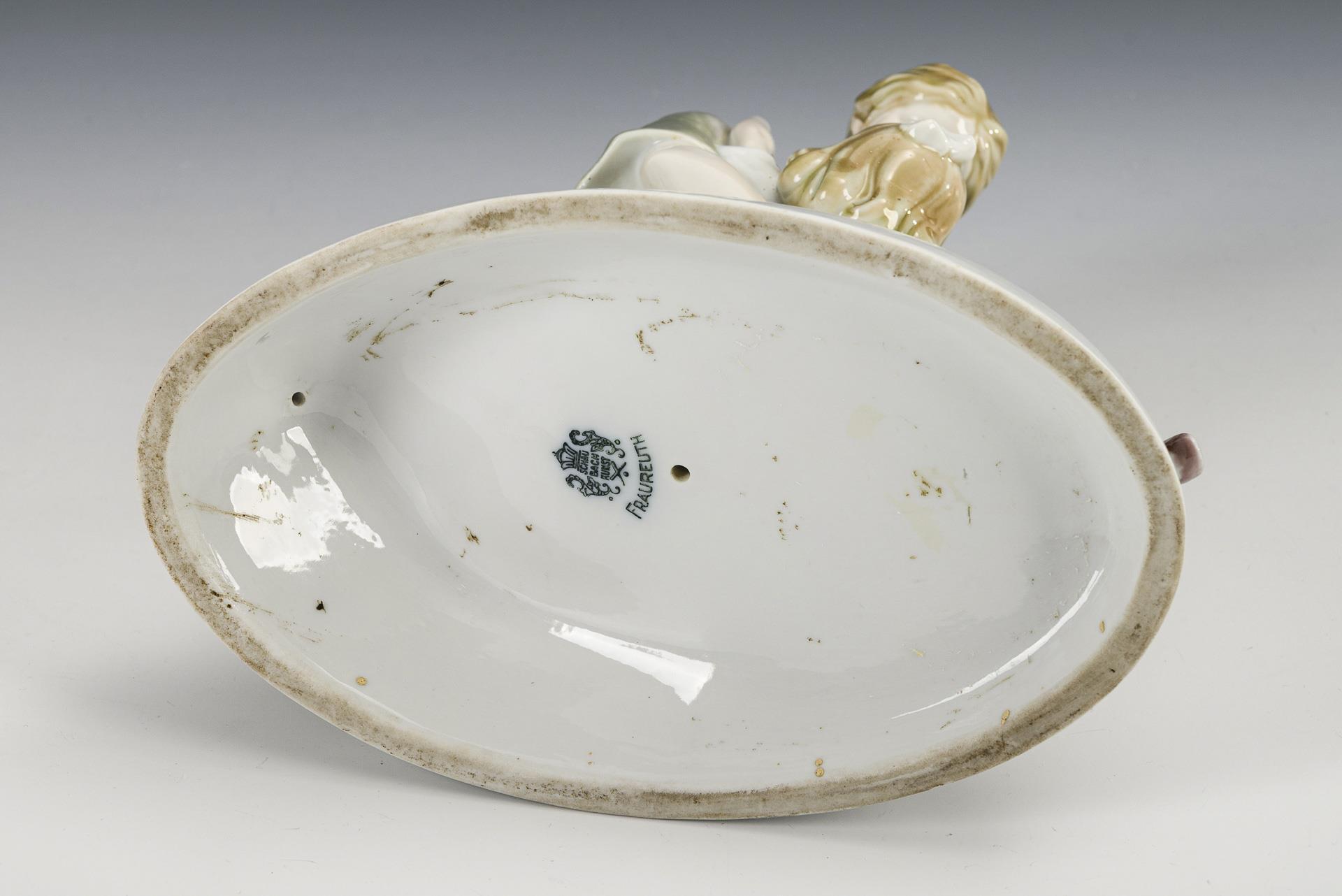 Unterglasurbemalung. H 21,5 cm, L 20,5 cm. Ca. 1,1 kg.