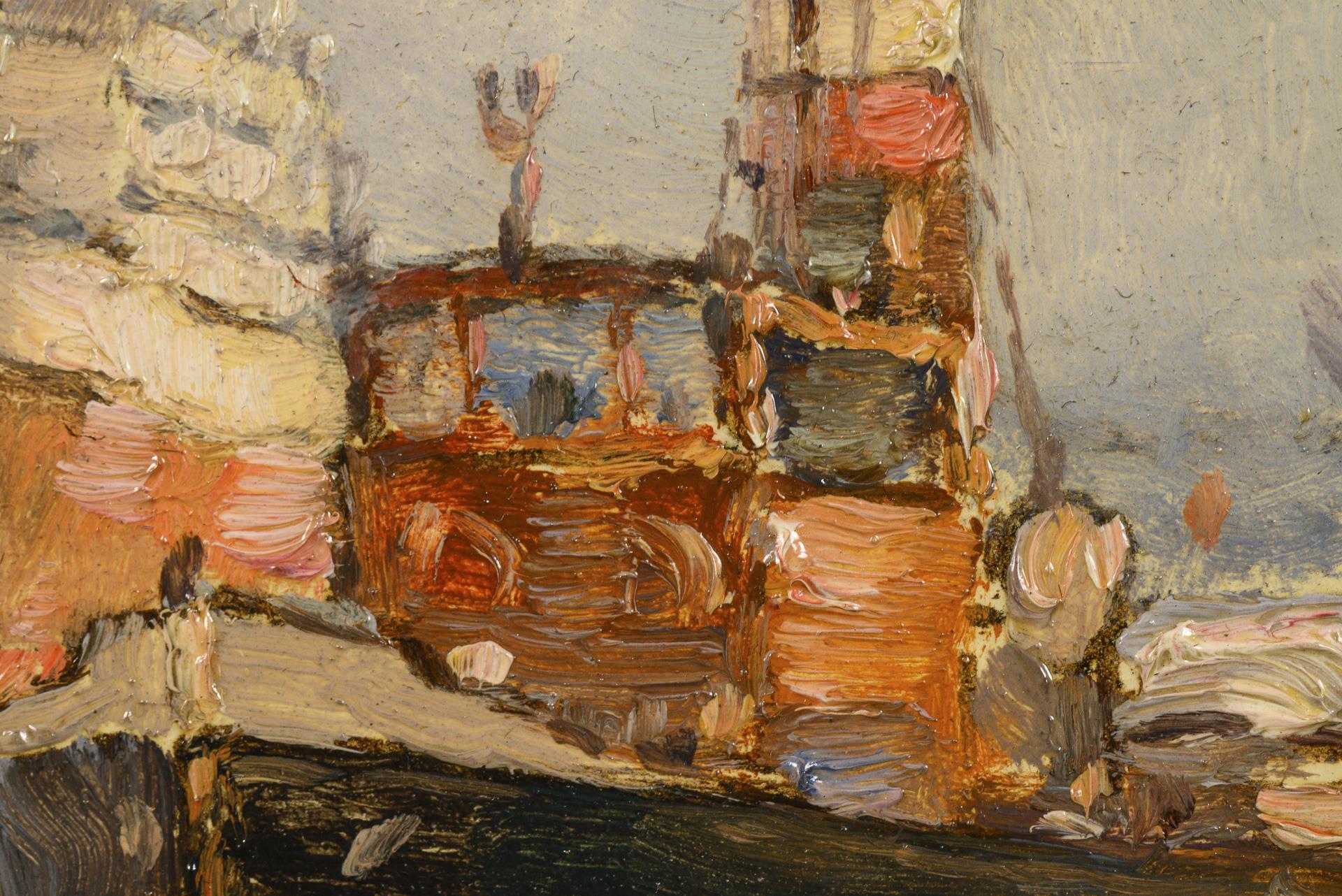 Öl/Hartfaser. Links unten signiert, verso Motivangabe.