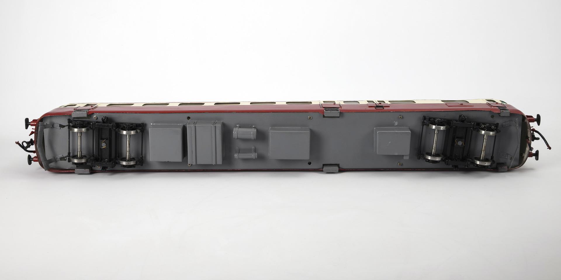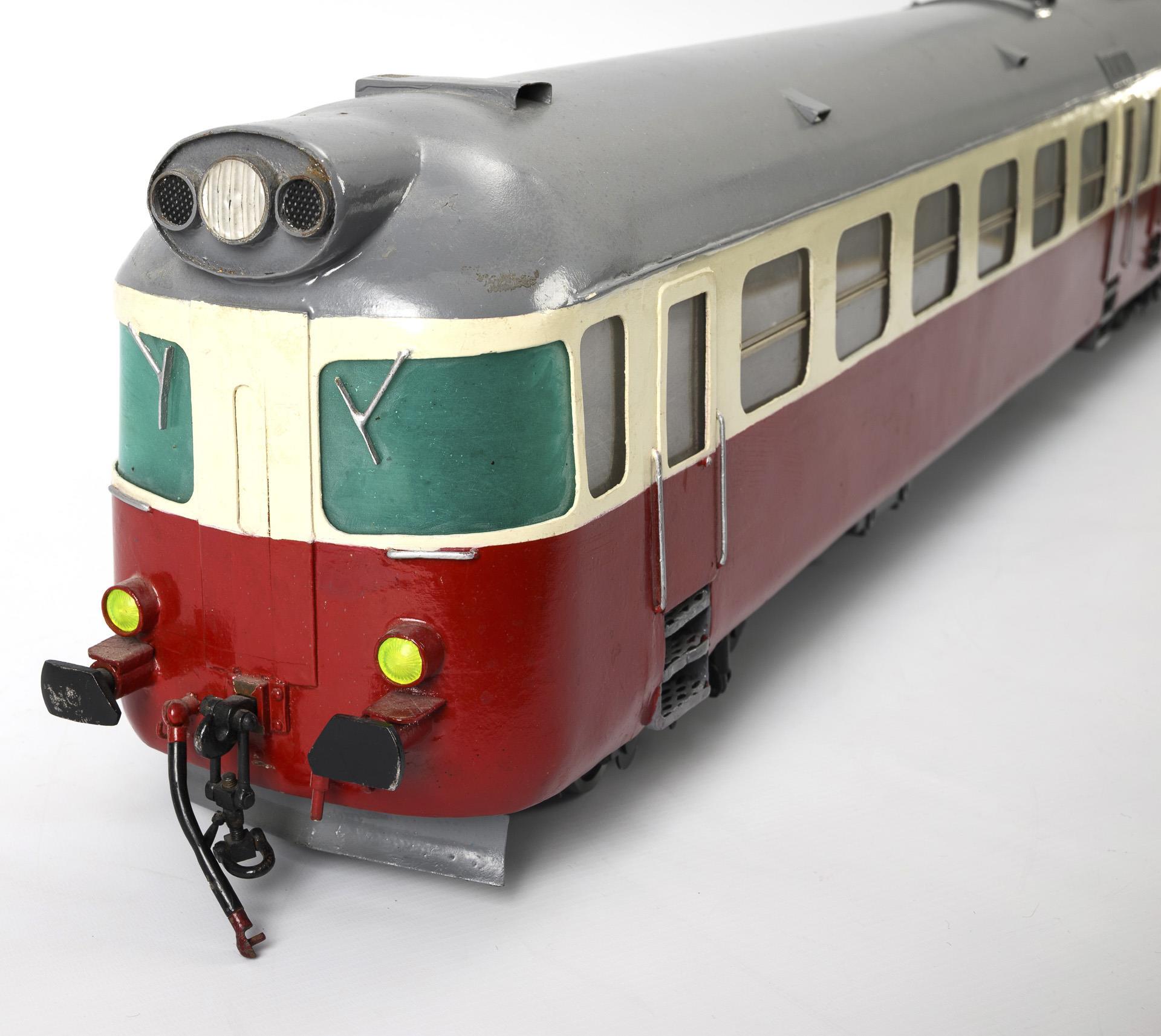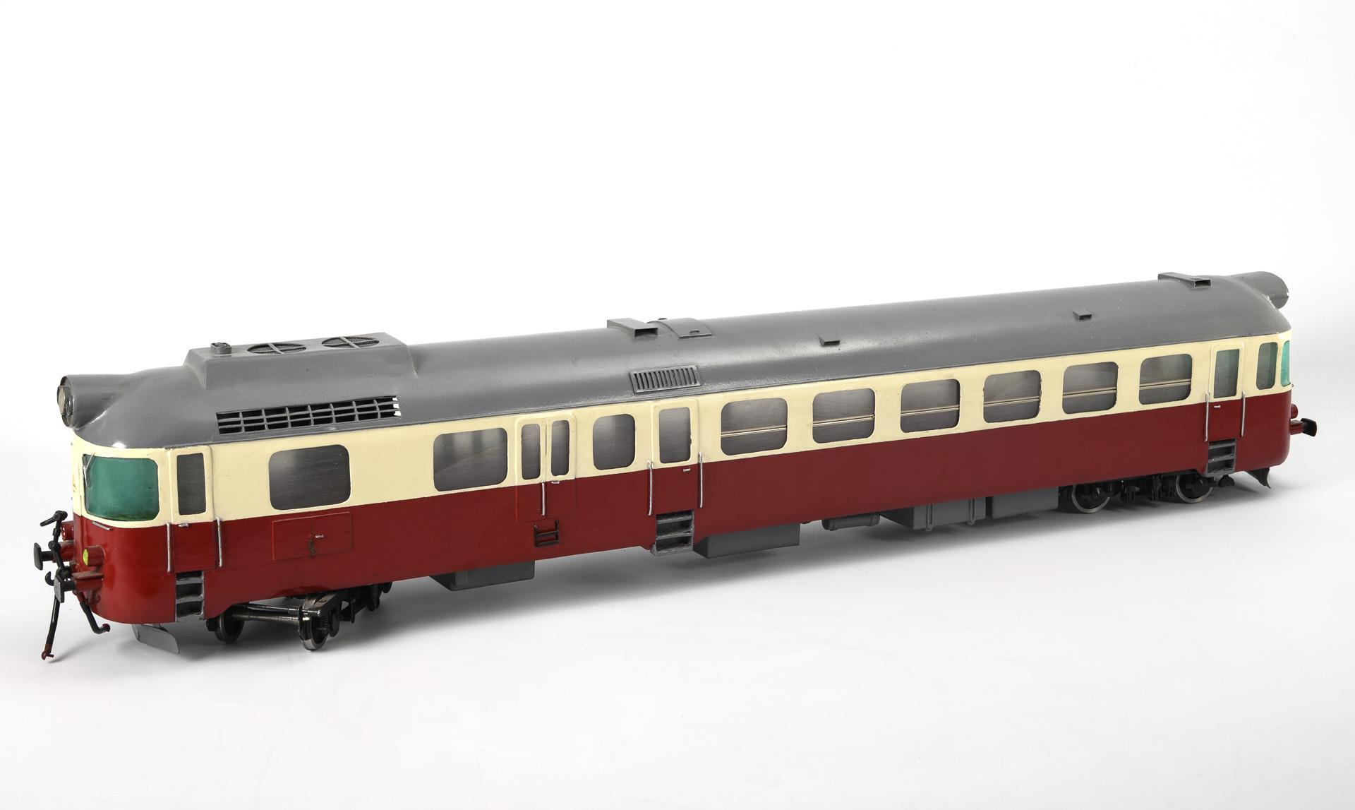 Spurweite 69 mm, für Elektrobetrieb. Modell der CSD-Baureihe M 286.0, der Tschechoslowakischen Staatsbahnen. Funktion nicht geprüft. Teils nachlackiert.